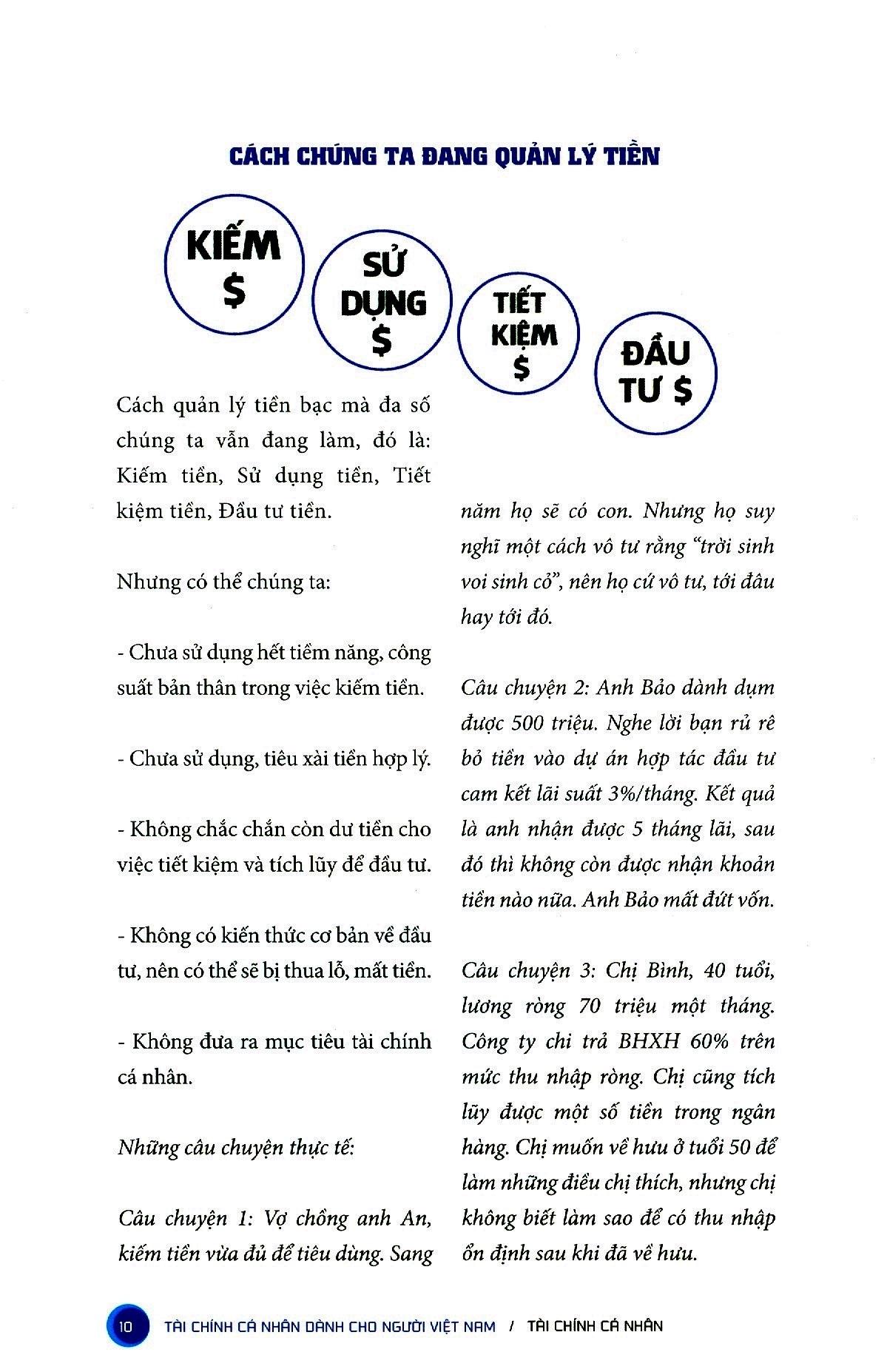 Tôi hy vọng và tin rằng cuốn sách này sẽ giúp cho nhiều người Việt Nam hiểu và có thể thực hành tài chính cá nhân, để có thể cải thiện tình hình tài chính, và sống một cuộc sống như mong muốn.