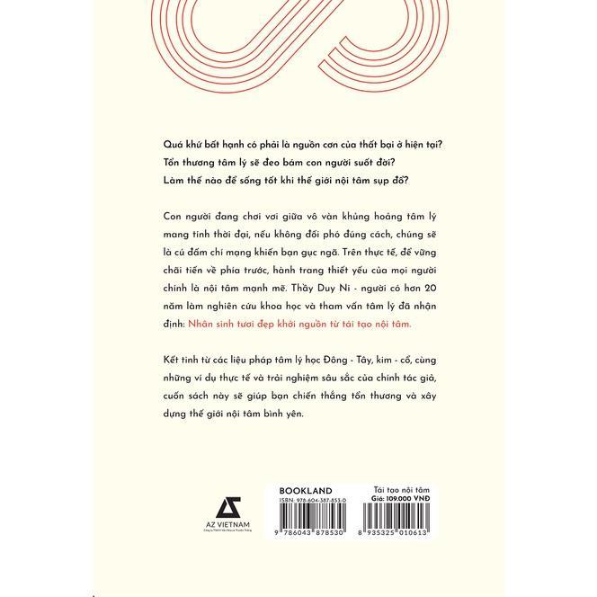 Thầy Duy Ni - người có hơn 20 năm làm nghiên cứu khoa học và tham vấn tâm lý đã nhận định: “Nhân sinh tươi đẹp khởi nguồn từ tái tạo nội tâm.” Cuốn sách này là kết tinh của các liệu pháp tâm lý học Đông - Tây, kim - cổ, cùng những ví dụ thực tế và trải nghiệm sâu sắc của chính tác giả. Nó sẽ giúp người đọc có cái nhìn chính xác và giải pháp thực tế để đối phó với các vấn đề tâm lý thường gặp như: lo lắng, sợ hãi, trầm cảm, ám ảnh cưỡng chế, Đây là một công cụ chắc chắn cần thiết để chiến thắng tổn thương và xây dựng thế giới nội tâm bình yên.