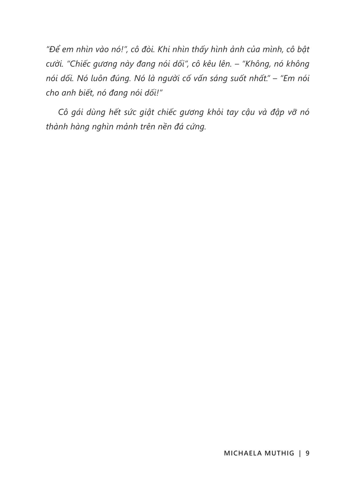 Michaela Muthig là bác sĩ chuyên khoa tâm lý học tâm thể và trị liệu tâm lý, với trọng tâm là liệu pháp hành vi. Bà từng giữ chức Quản lý và Giám đốc y khoa của phòng khám ngoại trú tại Đức. Bà là tác giả của 2 cuốn sách Kẻ phá hoại nhỏ bên trong chúng ta (Der kleine Saboteur in uns) và Tâm lý học kẻ mạo danh (Und morgen fliege ich auf). Hiện tại, bà cung cấp dịch vụ huấn luyện tinh thần và các khóa học trực tuyến.