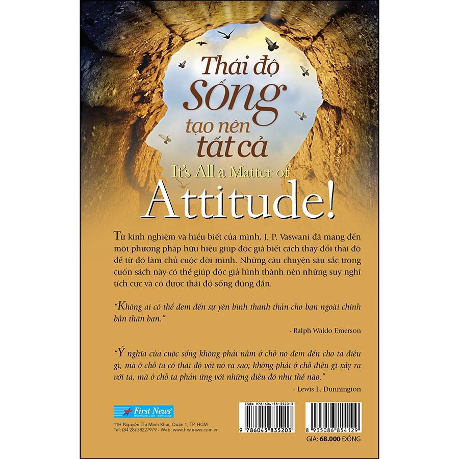 Được chọn lọc từ những bài diễn thuyết cùng kinh nghiệm sống của tác giả, Thái độ sống tạo nên tất cả tập hợp những câu chuyện viết về niềm tin và thái độ sống của con người. Những câu chuyện sâu sắc trong cuốn sách này có thể giúp chúng ta hình thành nên những suy nghĩ tích cực và một thái độ sống đúng đắn
