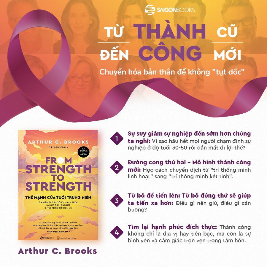 Đó là những câu hỏi mà Arthur C. Brooks – nhà xã hội học, tác giả sách bán chạy của The New York Times – đã tự đặt ra khi nhận thấy bản thân và nhiều người tài giỏi xung quanh đang đối mặt với sự chững lại trong sự nghiệp và cuộc sống. Trong Thế Mạnh Của Tuổi Trung Niên, ông không chỉ trả lời những trăn trở đó mà còn vạch ra một lộ trình cụ thể giúp mỗi người tận dụng tối đa giai đoạn trung niên để đạt được thành công và hạnh phúc bền vững.