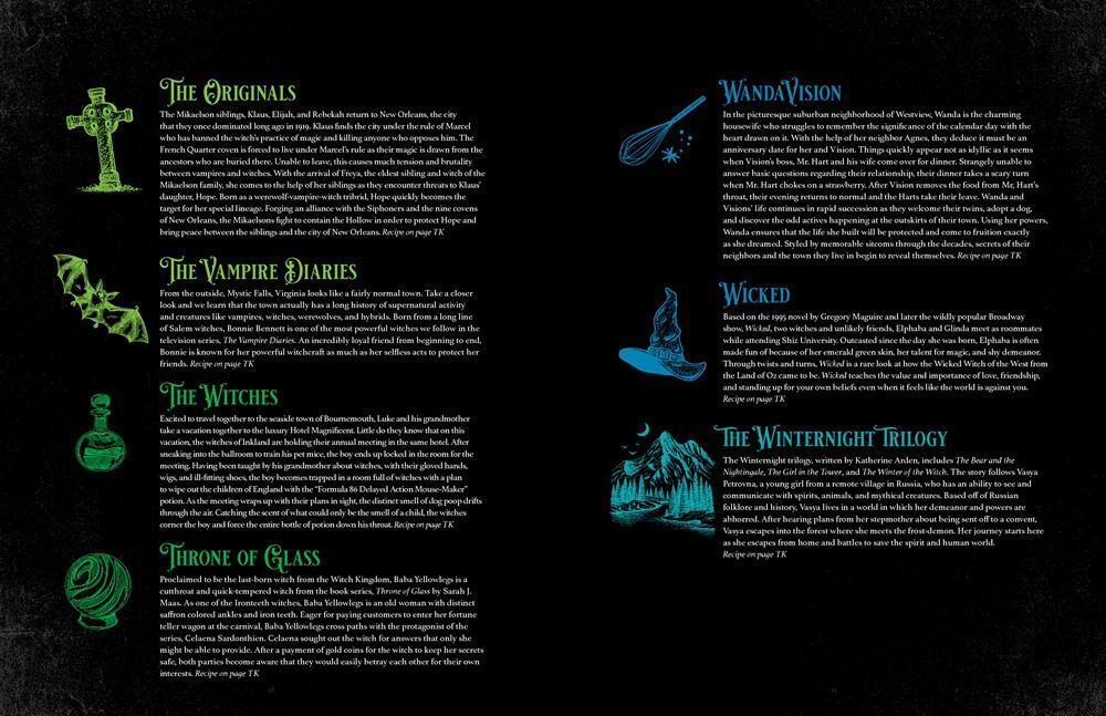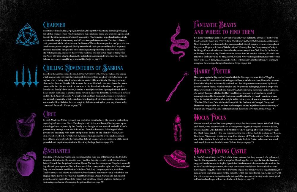 Conjure up enchanting recipes worthy of legendary witches! Gather ‘round your cauldron and summon your culinary senses! The Witch’s Cookbook brings you 75 recipes and gorgeous photographs inspired by literature, film, and television’s most adored witches. Start your magical journey with five charming chapters: Cast your best Bewitching Breakfasts and Beginnings; invoke Snacks, Starters, and Séances; captivate your coven with Enticing Entrees and Enchantments; reveal Desserts, Delights, and Divinations with a flick of your wand; and pour potions with Beldam, Brews and Beverages. Whip up beguiling recipes inspired by your favorite shows such as: