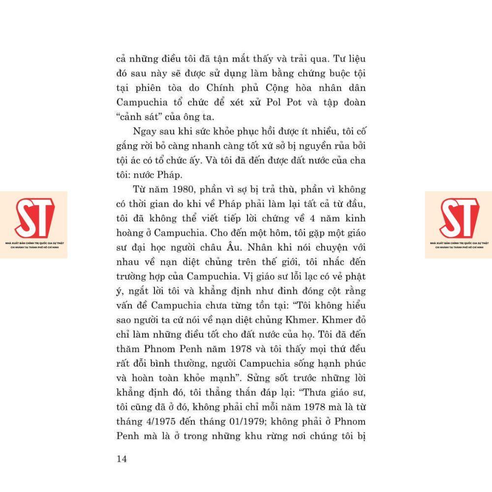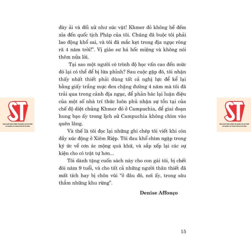 Tác giả cuốn sách là người mang quốc tịch Pháp, làm việc tại Đại sứ quán Pháp ở Campuchia trước khi quân Khmer đỏ chiếm Thủ đô Phnom Penh nên dù rất biết ơn bộ đội Việt Nam đã giải phóng bà và người dân Campuchia khỏi tay quân Khmer đỏ, nhưng bà vẫn có một số quan điểm, cách nhìn nhận khác với quan điểm chính thống của Việt Nam về chủ nghĩa xã hội, chủ nghĩa cộng sản. Tôn trọng ý kiến của tác giả trong bối cảnh lịch sử cụ thể khi đó, chúng tôi cố gắng giữ ý kiến của tác giả và khẳng định đó là ý kiến riêng của tác giả, không phản ánh quan điểm của Nhà xuất bản Chính trị quốc gia Sự thật.