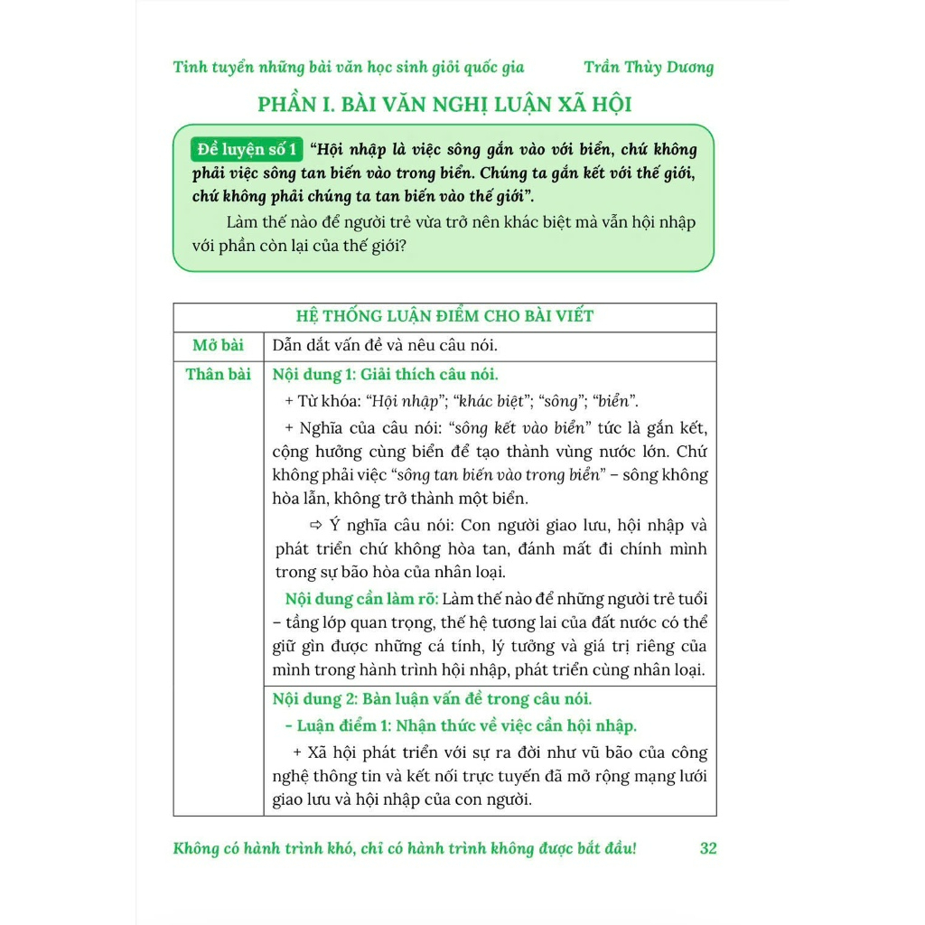 Mua tại TiktokSách Tinh tuyển Những bài văn Học sinh giỏi Quốc gia 2025 Cuốn sách này là bộ sưu tập 50 bài văn xuất sắc của các thí sinh đạt giải Nhất, Nhì trong kỳ thi Học sinh giỏi Quốc gia năm 2025. Sách được chia thành hai phần, cung cấp một nguồn tài liệu tham khảo chất lượng cao, giúp người học nâng cao tư duy và kỹ năng viết văn. Điểm nổi bật của cuốn sách Phần 1: Nghị luận xã hội (25 bài)