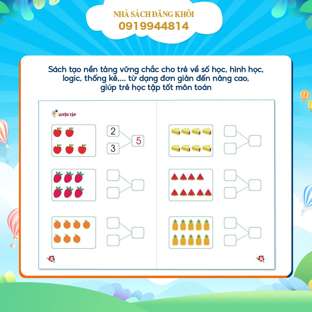 Trò chơi toán học– TOÁN TƯ DUY dành cho trẻ 3-4 tuổi Đây là cuốn sách được biên soạn dựa trên chương trình Toán tư duy mới theo phương pháp giáo dục sớm dành cho trẻ em của Nhật Bản. Cuốn sách với các trò chơi tích hợp bài học toán sẽ khơi dậy tiềm năng toán học cho trẻ, giúp trẻ yêu thích môn toán và phát triển tư duy ngay từ khi còn nhỏ. Cuốn sách “toán tư duy cho trẻ 3-4 tuổi” giúp các bé làm quen với các khái niệm toán học ban đầu như phân biệt giống nhau – khác nhau, so sánh to – nhỏ, lớn – bé, dài – ngắn … làm quen với các con số, hình dạng, nối hình, phân loại logic …giúp trẻ rèn kĩ năng tập trung, tư duy logic và phán đoán giải quyết vấn đề linh hoạt. Học và chơi cùng con sẽ giúp con thông minh hơn, học giỏi hơn và gắn kết tình cảm gia đình hơn.