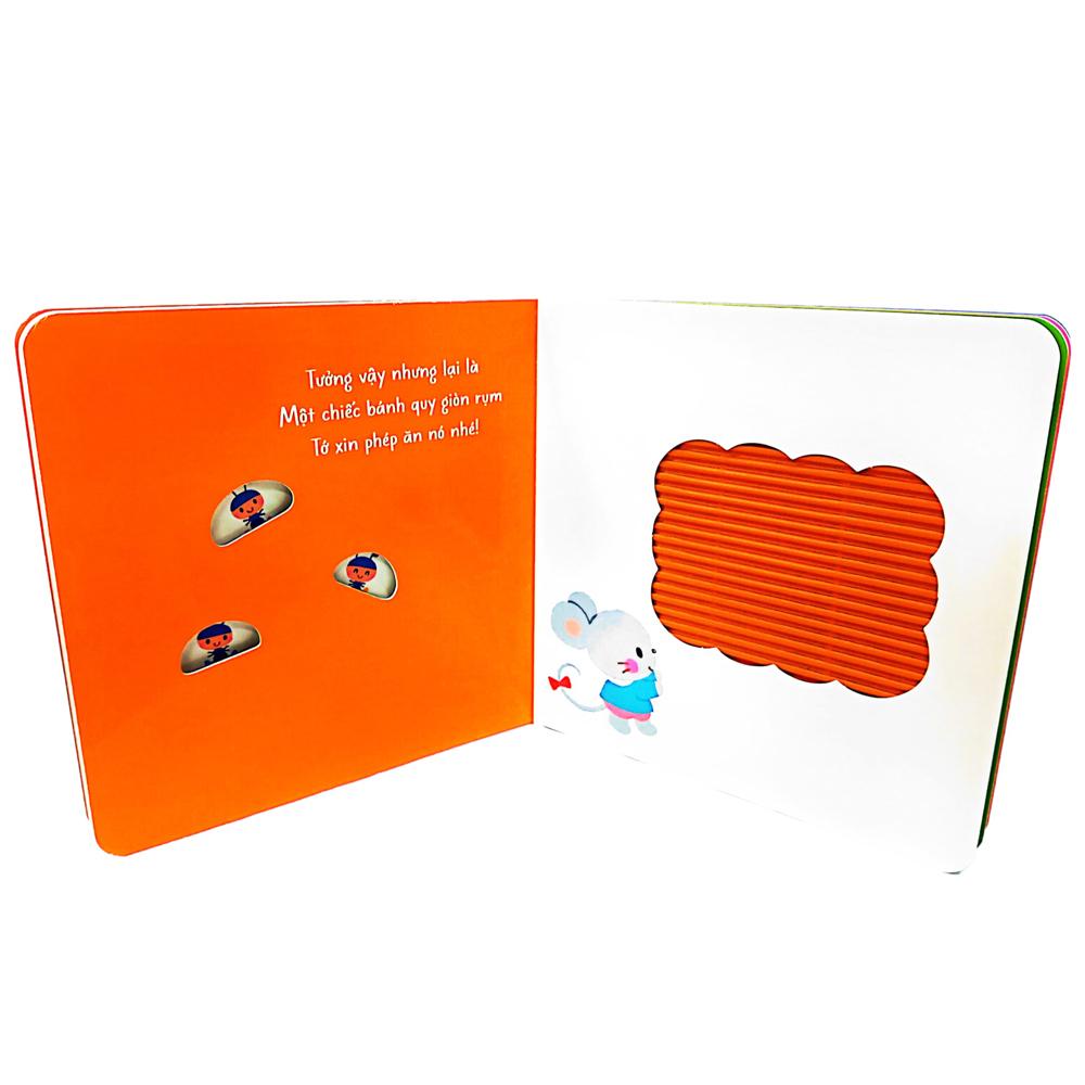 Tuyển tập sách tranh nổi tiếng của tác giả Shizue Arakawa mà bé có thể “chạm vào” và chơi đùa cùng mỗi trang sách. Bộ lông của cừu bông sẽ biến thành chiếc bánh kem bông xốp khi bé lật sang trang mới đấy! Phụ huynh cũng có thể vui vẻ chơi với bé, đặt cho bé những câu hỏi như “Con nghĩ hình này là gì?" và “Mềm mại thích quá!“. Từ đó tăng sự kết nối giữa các thành viên trong gia đình, tạo cho bé những trải nghiệm đầu đời về các chất liệu thú vị quanh m.ình.