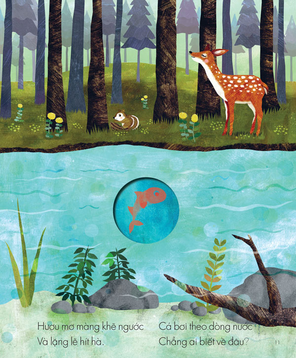 Theo chân cô cá nhỏ trong cuộc hành trình vĩ đại để khám vào những điều chưa biết, từ sông cho đến biển rộng. Cuốn sách đục lỗ này là một hành trình tuyệt đẹp, sẽ mang đến một trải nghiệm đọc vô cùng thú vị cho các bé khi được cảm nhận cô cá nhỏ bơi trên từng trang sách đầy màu sắc.