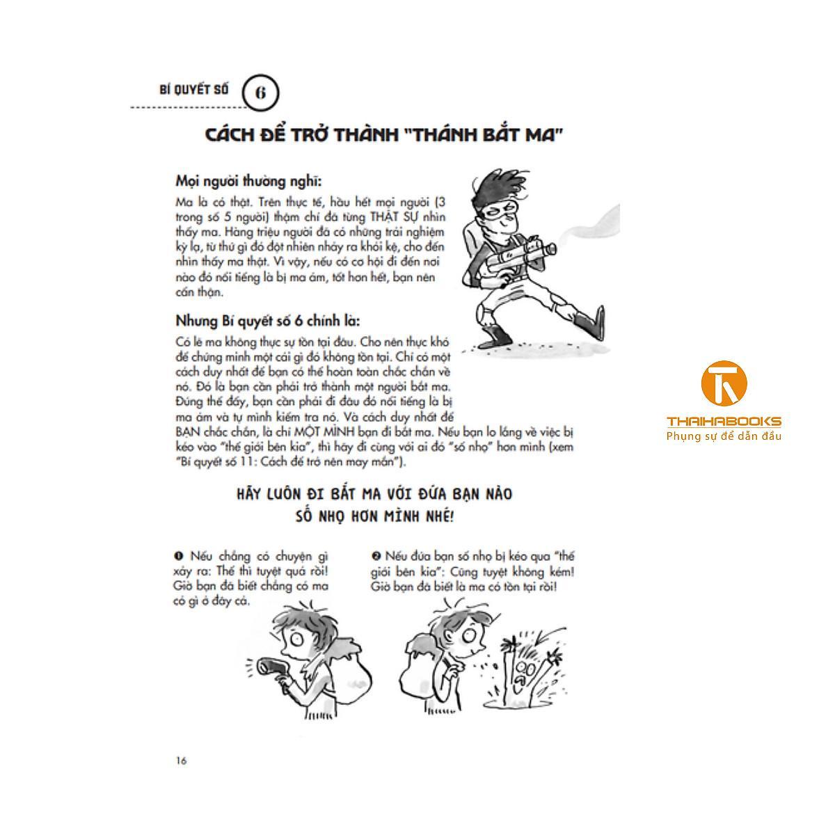 Nhưng Bí quyết số 6 chính là: Có lẽ ma không thực sự tồn tại đâu. Cho nên thực khó để chứng minh một cái gì đó không tồn tại. Chỉ có một cách duy nhất để bạn có thể hoàn toàn chắc chắn về nó. Đó là bạn cần phải trở thành một người bắt ma. Đúng thế đấy, bạn cần phải đi đâu đó nổi tiếng là bị ma ám và tự mình kiểm tra nó. Và cách duy nhất để BẠN chắc chắn, là chỉ MỘT MÌNH bạn đi bắt ma. Nếu bạn lo lắng về việc bị kéo vào “thế giới bên kia”, thì hãy đi cùng với ai đó “số nhọ” hơn mình…