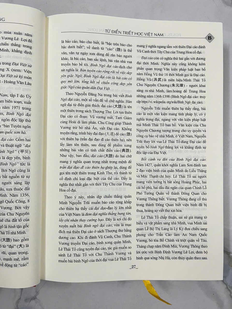 Sách Từ điển triết học Việt Nam (Dictionary of Vietnamese philosophy) - PGS.TS. Doãn Chính (Chủ biên)   Để góp phần vào sự nghiệp bảo tồn và phát huy nền văn hóa Việt Nam tiến tiến và đậm đà bản sắc dân tộc, khơi dậy lòng tự hào và sức mạnh nội sinh mạnh mẽ của dân tộc, trong những năm qua, cùng với việc nghiên cứu, giảng dạy và biên soạn bộ “Lịch sử triết học thế giới", Khoa Triết học, Trường Đại học Khoa học xã hội và Nhân văn Thành phố Hồ Chí Minh đã cố gắng tập trung vào nghiên cứu về lịch sử tư tưởng và lịch sử tư tưởng triết học Việt Nam. Điều đó đã được hiện thực hóa bằng các đề tài khoa học công nghệ và các cuốn sách chuyên khảo đã được công bố như: Quá trình chuyển biến tư tường chính trị Việt Nam cuối thế kỷ XIX đầu thế kỷ XX, Nxb. Chính trị quốc gia, Hà Nội, 2007, Doãn Chính và Phạm Đào Thịnh; Tư tường Việt Nam thời Lý Trần, Nxb. Chính trị quốc gia, Hà Nội, 2008, Doãn Chính, Trương Văn Chung (Đồng chủ biên); Bước chuyển tư tường chính trị Việt Nam cuối thế kỷ XIX đầu XX, Nxb. Chính trị quốc gia, Hà Nội, 2010, Doãn Chính, Trương Văn Chung (Đồng chủ biên); Tư tường Việt Nam từ thế kỷ XV đến thế kỷ XIX, Nxb. Chính trị quốc gia, Hà Nội, 2011, Doãn Chính (Chủ biên); Đề tài Khoa học công nghệ cấp Đại học quốc gia: Lịch sử tư tưởng triết học Việt Nam (từ thời kỳ dựng nước đến đầu thế kỷ XX) C.2013-18b-05, cấp ĐHQG, 2013-2015; Các khuynh hướng tư tường Việt Nam từ nửa cuối thế kỷ XIX đến nửa đầu thế kỷ XX- đặc điểm và ý nghĩa lịch sử, C2016-18b-06 cấp ĐHQG, 2016-2018; Lịch sử tư tường triết học Việt Nam - Từ thời kỳ dựng nước đến đầu thế kỷ XX, Nxb. Chính trị quốc gia, Hà Nội, 2013, Doãn Chính (Chủ biên) in thành sách từ đề tài Khoa học công nghệ C.2013-18b-05, cấp ĐHQG, 2013-2015; Tư tưởng triết học của Nguyễn An Ninh, Nxb. Đại học quốc gia Thành phố Hồ Chí Minh, 2019, Cao Xuân Long (Chủ biên). Những công trình trên đã góp phần giúp cho sinh viên, học viên cao học, nghiên cứu sinh và bạn đọc có thêm tài liệu tham khảo. Nhằm giúp cho bạn đọc tiếp cận với những vấn đề và những nội dung của lịch sử tư tưởng triết học Việt Nam một cách hệ thống, thuận tiện hơn, qua đó một lần nữa khẳng định giá trị và ý nghĩa to lớn của lịch sử tư tưởng triết học Việt Nam, chúng tôi đã tiến hành biên soạn cuốn “Từ điển triết học Việt Nam". Đây là chủ đề đã được chúng tôi chuẩn bị từ năm 1978, trong quá trình nghiên cứu về triết học phương Đông. Với ý tưởng và mong ước đó, qua nhiều năm nghiên cứu, đến nay chúng tôi đã hoàn thành cơ bản bản thảo cuốn “Từ điển triết học Việt Nam” để phục vụ bạn đọc. Trong cuốn sách này, chúng tôi cố gắng trình bày, giải thích rõ các khái niệm, phạm trù, nguyên lý, các kinh sách, các nhà triết học và các thiền phái triết học trong lịch sử tư tưởng triết học Việt Nam trên các mặt triết học, tôn giáo, luân lý, đạo đức và đặc biệt là các vấn đề về chính trị - xã hội, các phương pháp trị nước, giáo hóa dân, một cách chi tiết, sâu rộng và hệ thống nhất có thể. Ngoài ra, để giúp bạn đọc hiểu rõ hơn nội dung tư tưởng triết học của các nhà tư tưởng Việt Nam, trong cuốn sách này chúng tôi đã đưa thêm vào các thuật ngữ liên quan đến các sự kiện, địa danh, các nhân vật và các khái niệm, phạm trù của triết học Phật giáo, Nho giáo, Lão giáo mà các nhà tư tưởng Việt Nam sử dụng trong nội dung tư tưởng triết học của họ, cũng như liên quan đến những vấn đề về tinh thần quốc gia và dân tộc. Do điều kiện và khả năng có hạn, cuốn sách sẽ không tránh khỏi thiếu sót, rất mong bạn đọc lượng thứ và đóng góp ý kiến để lần xuất bản sau được tốt hơn. #tudientriethocvietnam #tudien #triethoc