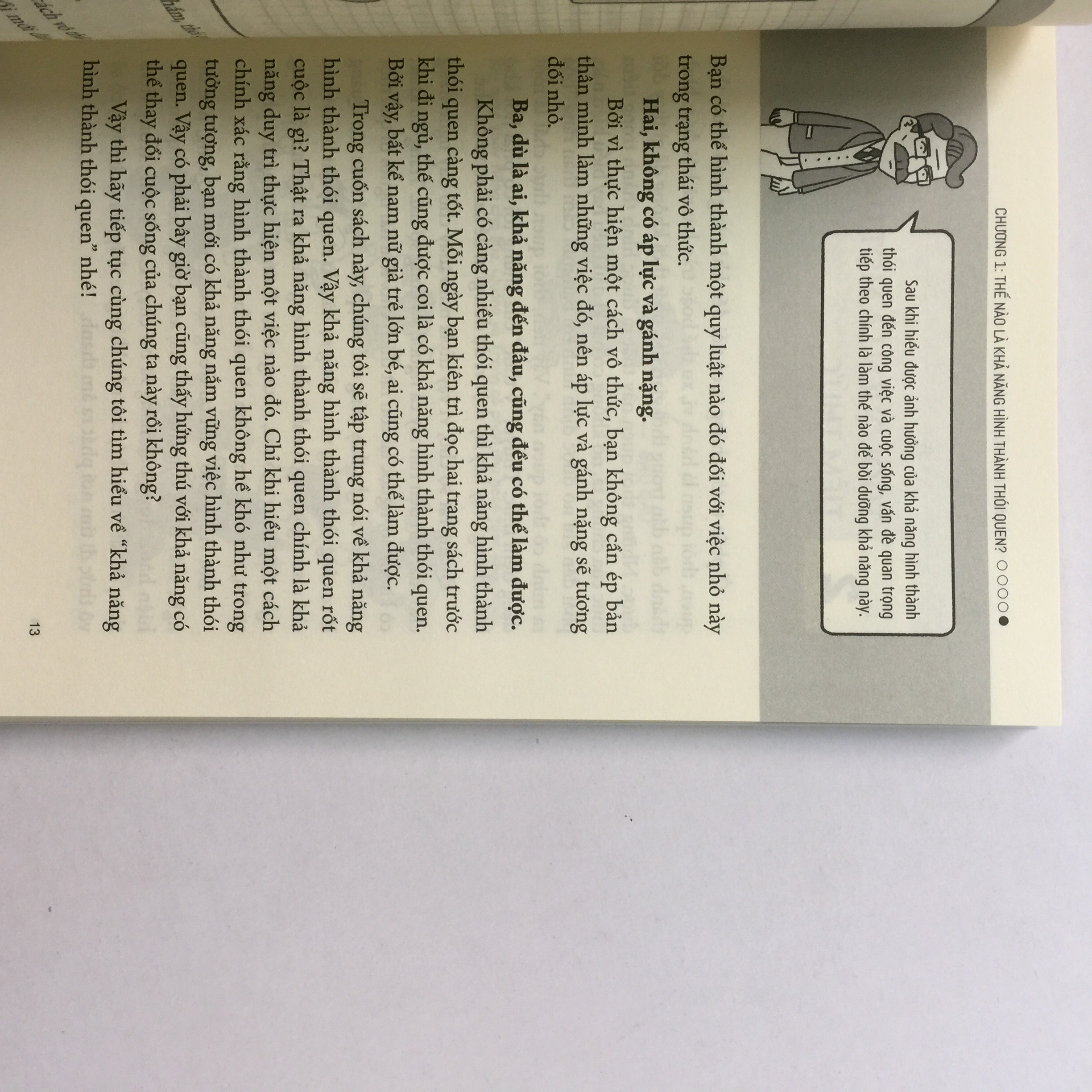 Trong công việc và cuộc sống, con người có rất nhiều loại thói quen tốt và xấu. Cả hai loại thói quen này đều có ảnh hưởng vô cùng lớn tới chất lượng cuộc sống của chúng ta. Vậy thì làm thế nào để có thể nhanh chóng loại bỏ thói quen xấu và hình thành thói quen tốt, giúp cuộc sống và công việc ngày càng tuyệt vời hơn? “Khả năng hình thành thói quen - Tạo lập thói quen mới chỉ sau 3 tuần” chính là cuốn cẩm nang bạn đang cần. Cuốn sách với những hình ảnh sinh động sẽ giúp bạn nhanh chóng lí giải và nắm bắt được các phương thức để trở thành người giỏi làm chủ các thói quen … Hãy cùng khám phá cuốn sách thú vị này! Cảm ơn bạn đã tham khảo cuốn sách này. Chúc một ngày tốt lành!