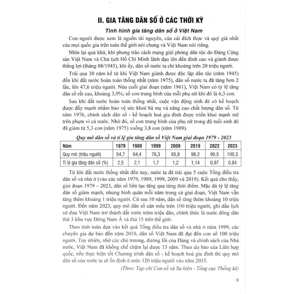 Mua tại TiktokSÁCH - Tư liệu dạy - học địa lí 9 (dùng chung cho các bộ sgk hiện hành) Tư Liệu Dạy - Học Địa Lí 9 (Dùng Chung Cho Các Bộ SGK Hiện Hành) Sách TƯ LIỆU DẠY - HỌC ĐỊA LÍ 9 được biên soạn nhằm cung cấp cho giáo viên và học sinh các tư liệu cần thiết làm cơ sở hiểu sâu hơn các nội dung và yêu cầu cần đạt trong Chương trình giáo dục phổ thông môn Lịch sử và Địa lí, phần Địa lí góp phần nâng cao hiệu quả dạy học Địa lí phát triển phẩm chất và năng lực học sinh. Sách được biên soạn theo Chương trình giáo dục phổ thông môn Lịch sử và Địa lí (cấp Trung học cơ sở) (Ban hành kèm theo Thông tư số 32/2018/TT-BGD ĐT ngày 26 tháng 12 năm 2018 của Bộ trưởng Bộ Giáo dục và Đào tạo). Sách được trình bày theo các chủ đề nội dung của Chương trình. Nội dung sách gồm một số tư liệu cần thiết giúp bổ sung, làm sáng rõ hoặc cụ thể hoá các nội dung dạy – học địa lí dân cư, địa lí ngành kinh tế và sự phân hoá lãnh thổ Việt Nam theo chương trình phân môn Địa lí lớp 9 THCS. Các tư liệu chủ yếu được lấy từ các sách, tạp chí, bài báo nghiên cứu khoa học, sách/ bài báo phổ biến kiến thức khoa học, của các nhà nghiên cứu, nhà giáo, nhà khoa học, nhà báo, Chúng tôi rất mong được các tác giả cho phép và trân trọng bày tỏ lòng cảm ơn. Việc chọn lọc, tổng hợp và trình bày nội dung sách tham khảo địa lí theo chương trình mới, mặc dù các tác giả có nhiều nỗ lực nhưng chắc chắn không tránh khỏi những hạn chế, thiếu sót. Các tác giả rất mong nhận được những ý kiến đóng góp để cuốn sách được hoàn thiện, phục vụ thiết thực hơn hoạt động dạy và học ở nhà trường.