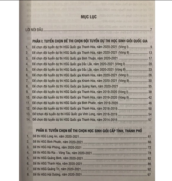 Nội dung gồm có: Phần I: Tuyển chọn đề thi chọn đội dự tuyển thi học sinh giỏi quốc gia Phần II: Tuyển chọn đề thi chọn học sinh giỏi cấp tỉnh, thành phố Tất cả các đề đều có đáp án và thang điểm chi tiết Đây sẽ là tài liệu hữu ích cho các em học sinh và các thầy cố giáo trong quá trình ôn luyện, bồi dưỡng học sinh giỏi. Chi tiết sản phẩm Tác giả: Kim Hà Sô trang: 359 Xuất bản: 2022 Nhà xuất bản: Đại học quốc gia Hà Nội Công ty phát hành: NXB Đại Học Quốc Gia Hà Nội