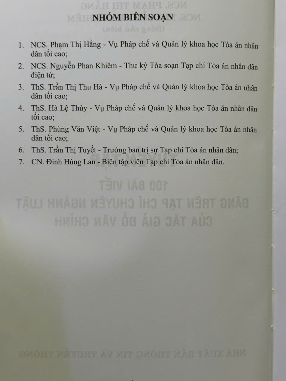 Đây là kho tư liệu quý cho Thẩm phán, những người làm công tác thực tiễn, giảng dạy và nghiên cứu pháp luật. Chúng tôi hi vọng, cuốn sách sẽ là công cụ tra cứu hữu ích cho bạn đọc.