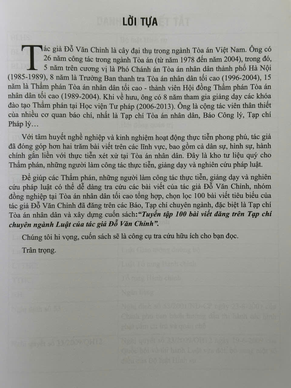 Cuốn sách này được nhóm đồng nghiệp tại Tòa án nhân dân tối cao tổng hợp, chọn lọc 100 bài viết tiêu biểu của tác giả Đỗ Văn Chỉnh đã đăng trên các Báo, Tạp chí chuyên ngành, đặc biệt là Tạp chí Tòa án nhân dân.