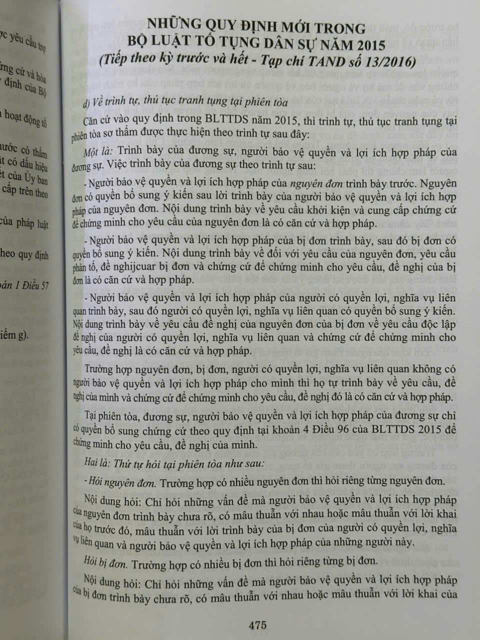 Những nội Dung mới của Bộ Luật Tố Tụng hình sự năm 2015 Tác giả: Ts Vũ Gia Lâm- Đại học luật Hà Nội Nhà xuất bản: Tư Pháp Phát hành: 12/2017 Số trang: 660