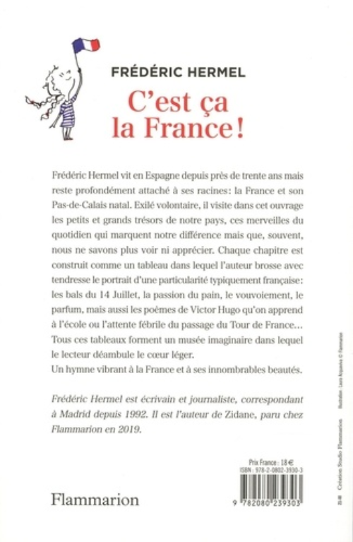 Frédéric Hermel vit en Espagne depuis près de trente ans mais reste profondément attaché à ses racines : la France et son Pas-de-Calais natal. Exilé volontaire, il visite dans cet ouvrage les petits et grands trésors de notre pays, ces merveilles du quotidien qui marquent notre différence mais que, souvent, nous ne savons plus voir ni apprécier. Chaque chapitre est construit comme un tableau dans lequel l'auteur brosse avec tendresse le portrait d'une particularité typiquement française : les bals du 14 Juillet, la passion du pain, le vouvoiement, le parfum, mais aussi les poèmes de Victor Hugo qu'on apprend à l'école ou l'attente fébrile du passage du Tour de F Tous ces tableaux forment un musée imaginaire dans lequel le lecteur déambule le coeur léger. Un hymne vibrant à la France et à ses innombrables beautés.
