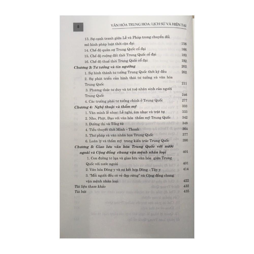 Để giúp bạn đọc có thêm tài liệu và có cái nhìn tổng thể về đất nước và văn hóa Trung Quốc, Nhà xuất bản Chính trị quốc gia Sự thật đã tổ chức dịch và xuất bản cuốn sách Văn hóa Trung Hoa: Lịch sử và hiện tại của Nhà xuất bản Khoa học xã hội Trung Quốc. Cuốn sách lấy bối cảnh là nền văn minh Trung Quốc và phương Tây giao lưu học hỏi lẫn nhau để giải thích nội dung chính của văn hóa Trung Quốc một cách vừa giản lược, vừa hệ thống từ các phương diện nguồn gốc, diễn biến của văn minh Trung Hoa, chế độ, tư tưởng, giá trị, cũng như nghệ thuật và thẩm mỹ trong lịch sử Trung Quốc và cuối cùng là chia sẻ “kinh nghiệm Trung Quốc, lý luận Trung Quốc, “chế độ Trung Quốc với thế giới bên ngoài qua năm chương khác nhau: