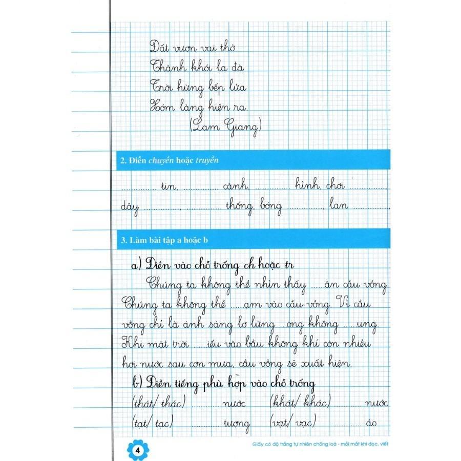 Sách được thiết kế và in ấn một cách công phu, trình bày đẹp trên chất liệu giấy tốt, chống loá, qua từng bài luyện, các em sẽ học được cách thức trình bày khoa học, sáng sủa, sạch đẹp trên mỗi trang vở. Vở Chính tả là sự lựa chọn ưu việt cho các em học sinh trong quá trình “Luyện nét chữ, rèn nết người”.