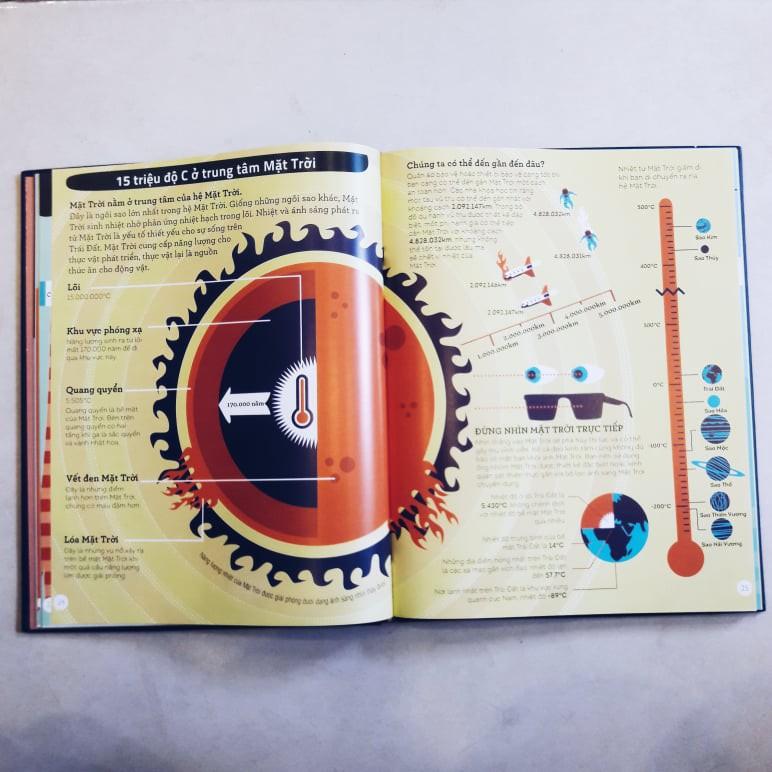Thông qua cuốn sách này, các bạn nhỏ sẽ được tiếp cận với các loại biểu đồ cột, biểu đồ tròn, bảng biểu và hình họa. Khiến việc học tập và nghiên cứu số liệu trở nên hấp dẫn hơn. Đúng như cái tên của mình, “Vũ trụ qua lăng kính số” đem đến lượng tri thức đồ sộ trong mọi lĩnh vực, từ động vật, thực vật, vũ trụ cho tới thể thao, kinh tế, kiến trúc, Chỉ với cuốn sách tuyệt vời này, các bạn nhỏ sẽ học được biết bao điều kỳ diệu!