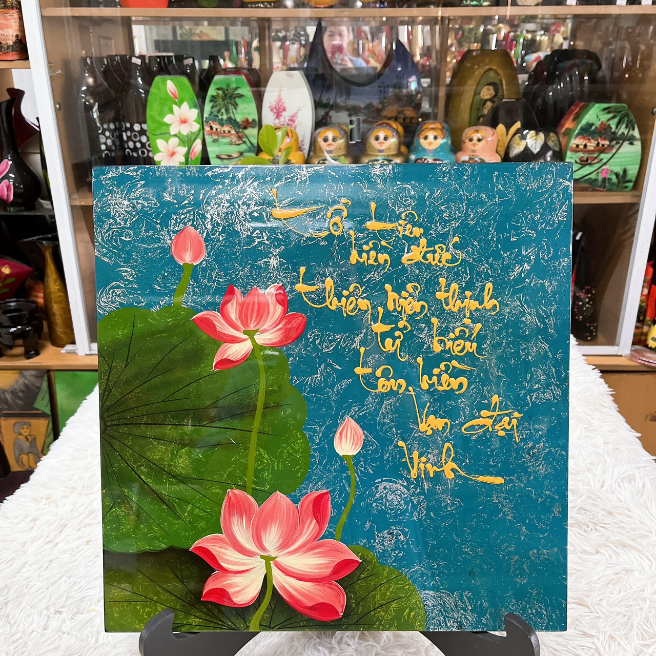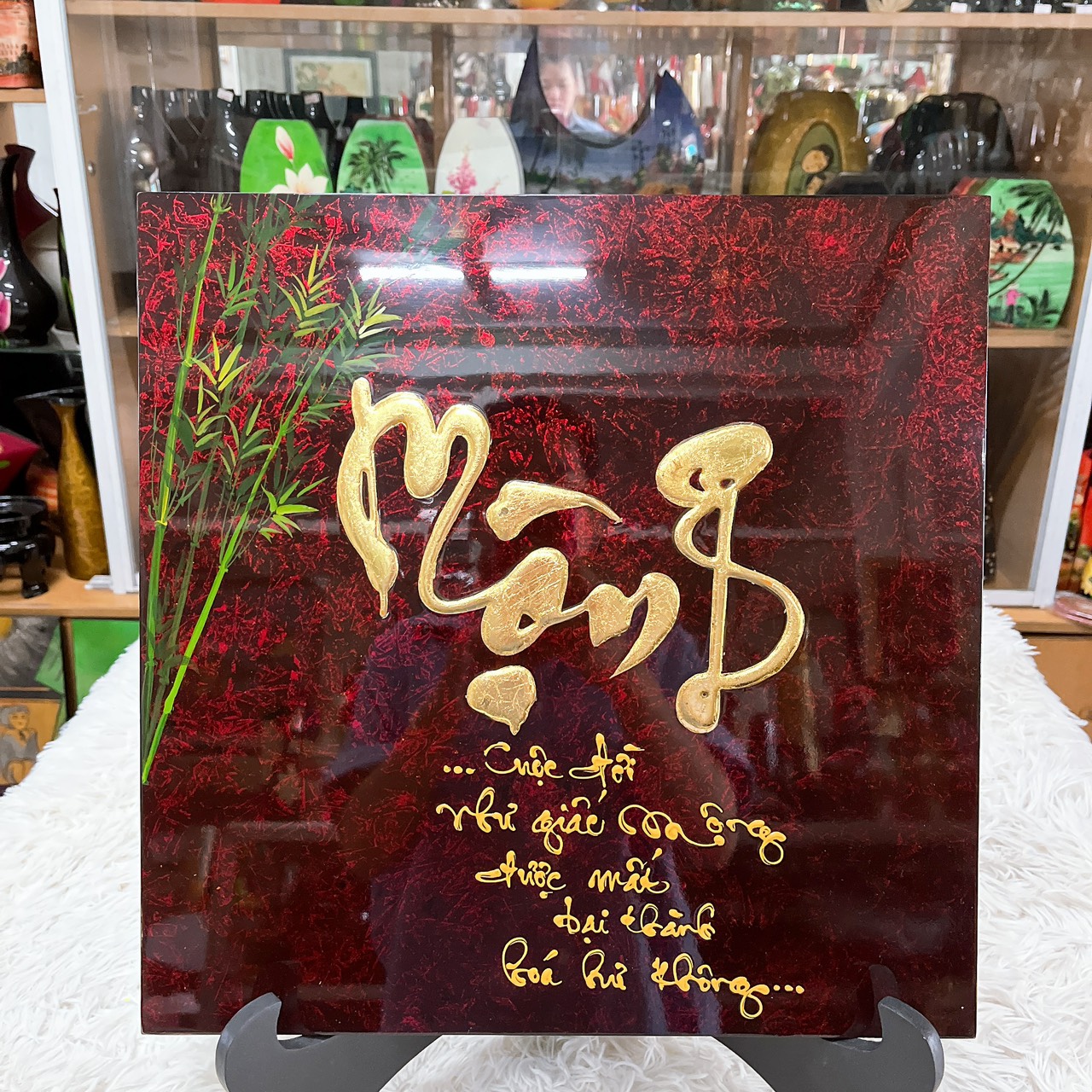 ✨[ Sale Mạnh] Tranh sơn mài chữ ,thơ kèm họa tiết 40x40 cm ý nghĩa thích hợp làm quà tặng, trang trí,...