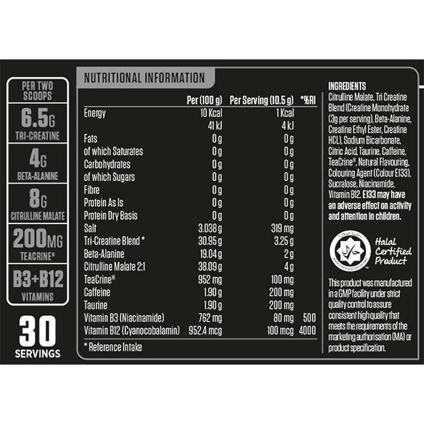 ️ƯU ĐIỂM NỔI BẬT +Creatine làm tăng hiệu suất thể chất khi tập thể dục cường độ cao +Niacin góp phần làm giảm căng thẳng và mệt mỏi +Vitamin B12 góp phần hình thành tế bào hồng cầu ổn định +Bổ sung Vitamin B3 & B12 +Mở rộng đường hô hấp của bạn với công thức Breathe Easy (chỉ có trong vị Kẹo Ice Blast) +Đã kiểm tra cho các vận động viên +Sản phẩm được chứng nhận Halal ***Chứng nhận Halal là một loại chứng chỉ xác nhận rằng sản phẩm nào đó đạt yêu cầu về các thành phần và điều kiện sản xuất đáp ứng yêu cầu của Kinh Qua’ran và luật Shariah (Luật của người Hồi Giáo). Các sản phẩm buộc phải đạt Chứng nhận Halal tại các thị trường Hồi giáo chia ra 4 loại chính: Thực phẩm và đồ uống, Thuốc chữa bệnh, Mỹ phẩm, Các sản phẩm thực phẩm chức năng. ️BẢO HÀNH: Sản phẩm được bảo hành trong vòng 30 ngày, với điều kiện.