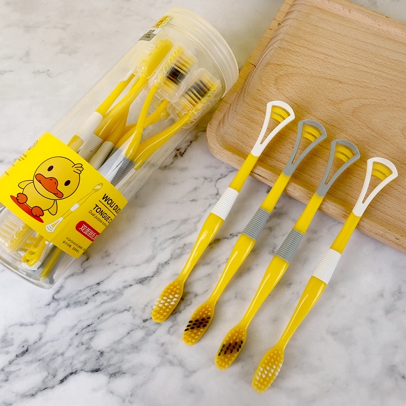 -Sản phẩm dụng cụ vệ sinh -Hộp 8 cây bàn chải cho bé 2 in 1 kèm dụng cụ cạo lưỡi ,cán cầm chống trượt ,lông bàn chải sợi tơ siêu mềm , giúp chải răng sạch hơn , giảm vi khuẩn gây sâu răng và hôi miệng an toàn và tiện lợi -Xuất xứ : Trung Quốc -Chất liệu : nhựa PP cao su  -Kích thước : dài 19cm -Màu sắc :  giao màu ngẫu nhiên -Đặc điểm nổi bật : -Thiết kế lông bàn chải từ hàng trăm sợi tơ siêu mềm , len lỏi vào từng kẽ răng giúp chải răng sạch hơn  -Massage nướu lợi giúp loại bỏ những mảng bám cứng đầu nhấtcầm -Với thành phần từ hạt carbon an toàn cho sức khỏe răng miệng người dùng , lông mềm mịn an toàn  -Bàn chải thon gọn giúp đánh răng dễ dàng  -Cán làm từ nhựa kết hợp với lớp bọc cao su chống trượt cực tốt  -Phía cuối bàn chải được thiết kế thêm phần cạo tưa lưỡi , giúp giảm vi khuẩn gây sâu răng và hôi miệng  -Thiết kế hình vịt vàng xin xắn ,đáng yêu ngộ nghĩnh ,kích thích nhu cầu đánh răng hằng ngày cho các bé  Sản phẩm này là tài sản cá nhân được bán bởi Nhà Bán Hàng Cá Nhân và không thuộc đối tượng phải chịu thuế GTGT. Do đó hoá đơn VAT không được cung cấp trong trường hợp này.