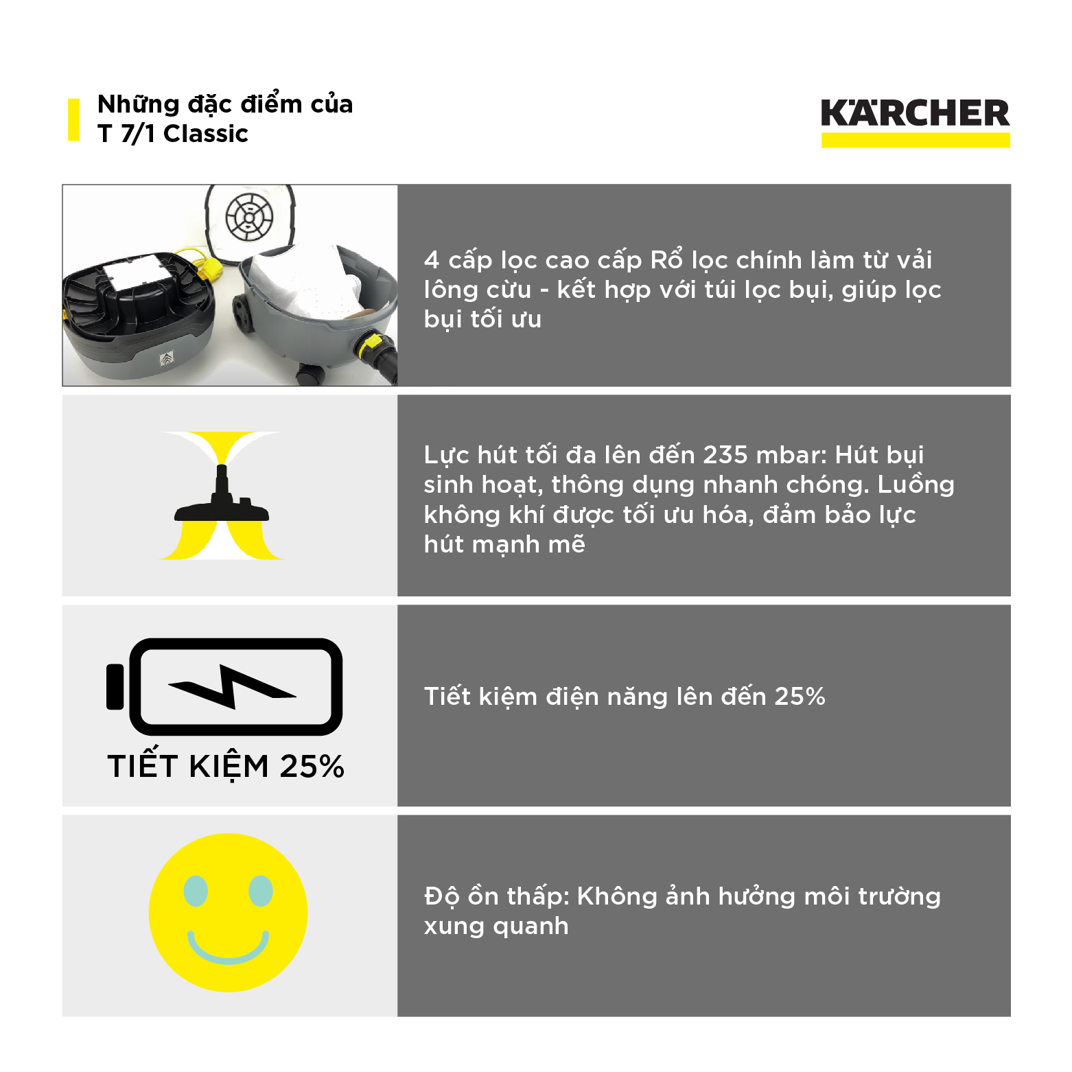 ✨[Sản xuất Châu Âu] Máy hút bụi khô công nghiệp Karcher T 7/1 Classic - Hàng chính hãng