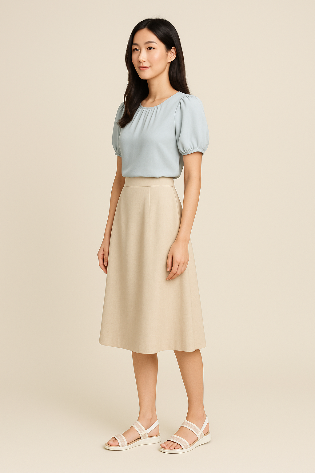 Phong cách: • Phù hợp đi dạo phố, đi làm, du lịch hay phối đồ công sở nhẹ nhàng. • Dễ phối cùng váy suông, chân váy midi hay quần culottes.