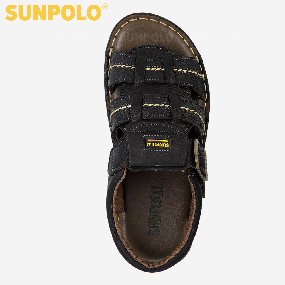 Mua tại Tiktok- Sandal Nam SUNPOLO SDA002 bền bỉ bởi chất liệu quai da bò 100% dày dặn, mềm mại, đường chỉ may tinh tế, nổi bật phong cách trẻ trung, năng động, đế cao su đàn hồi tốt, thiết kế mặt đế xẻ rãnh thông minh chống trơn trượt cả khi đi mưa