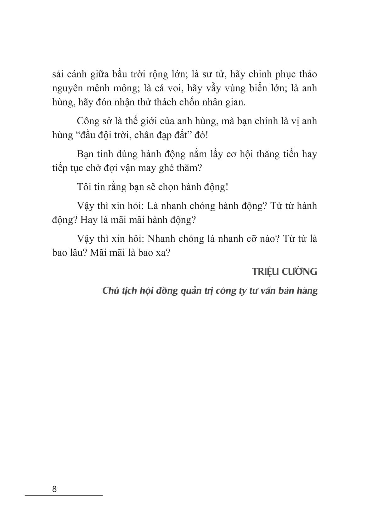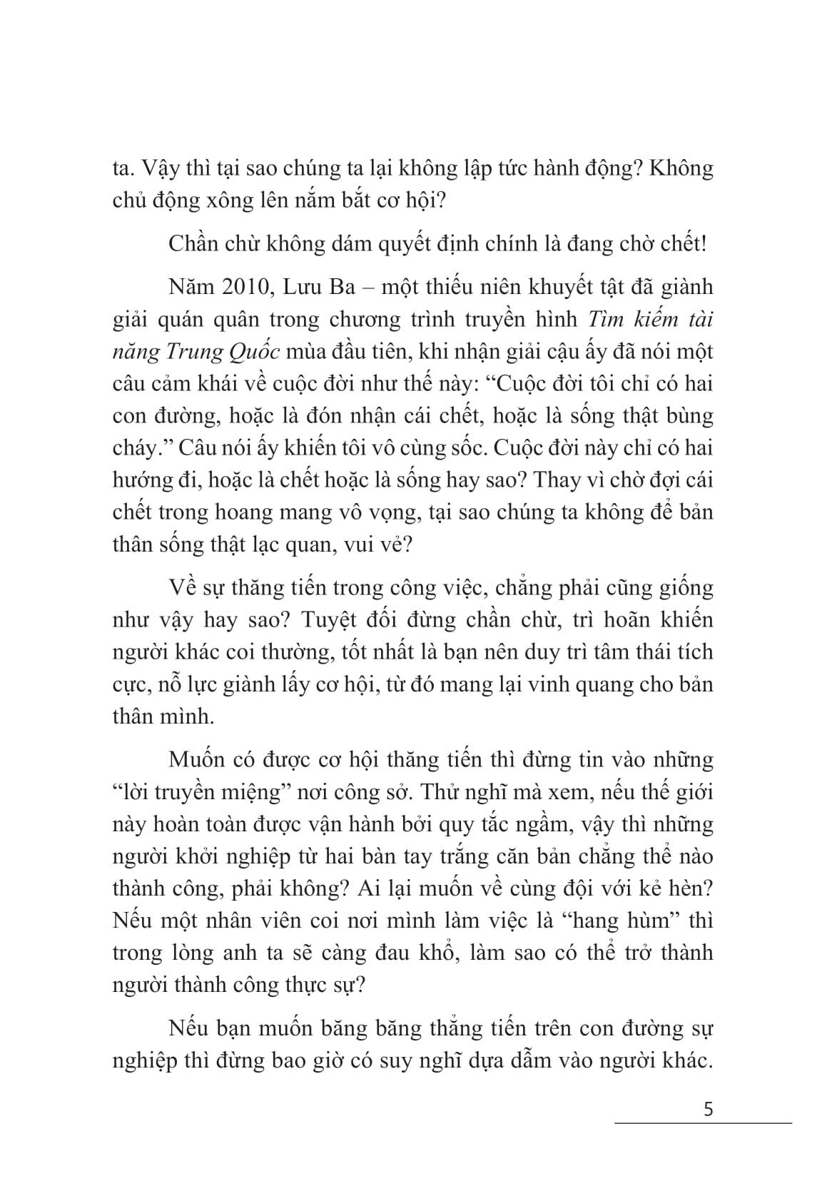 Thăng tiến là chuyện bạn phải dùng trí tuệ của mình để giành lấy, là phải suy tính từng bước đi với sự kiên định mạnh mẽ, là phải biết rút kinh nghiệm sau mỗi lần thất bại, là phải bỏ ra nhiều mồ hôi nước mắt mà thành.