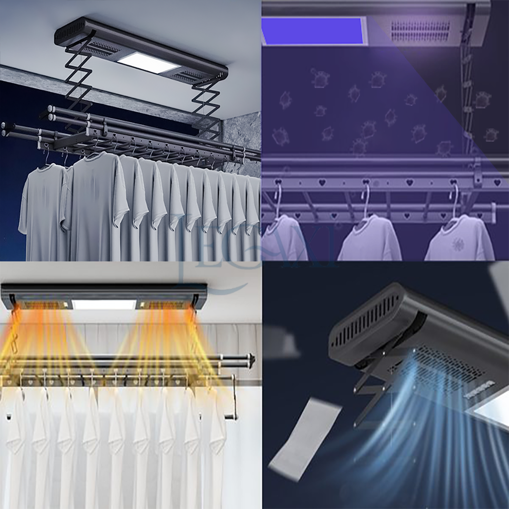 ✨Sào Phơi Đồ Tự Động, Giá Treo Quần Áo Có Quạt Sấy Khô Đèn LED Khử Trùng Tia Cực Tím Remote Gắn Trần Legaxi