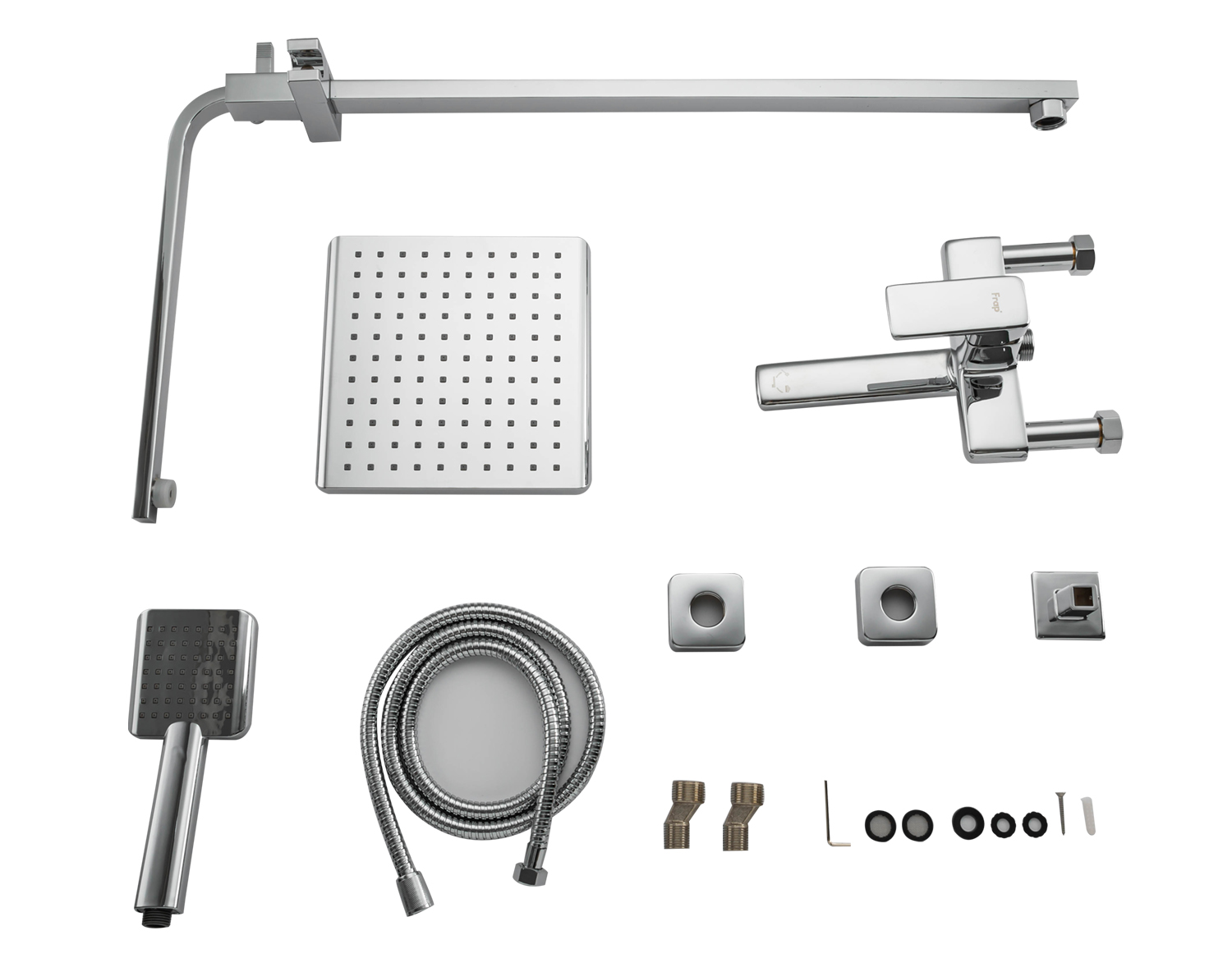 Combo gồm: 01 thân vòi sen lạnh, 01 chụp chân sen, 01 thân vòi lavabo, 01 dây cấp nước, 01 tay sen, 01 dây sen, 01 gác tay sen + ốc vít và tắc kê