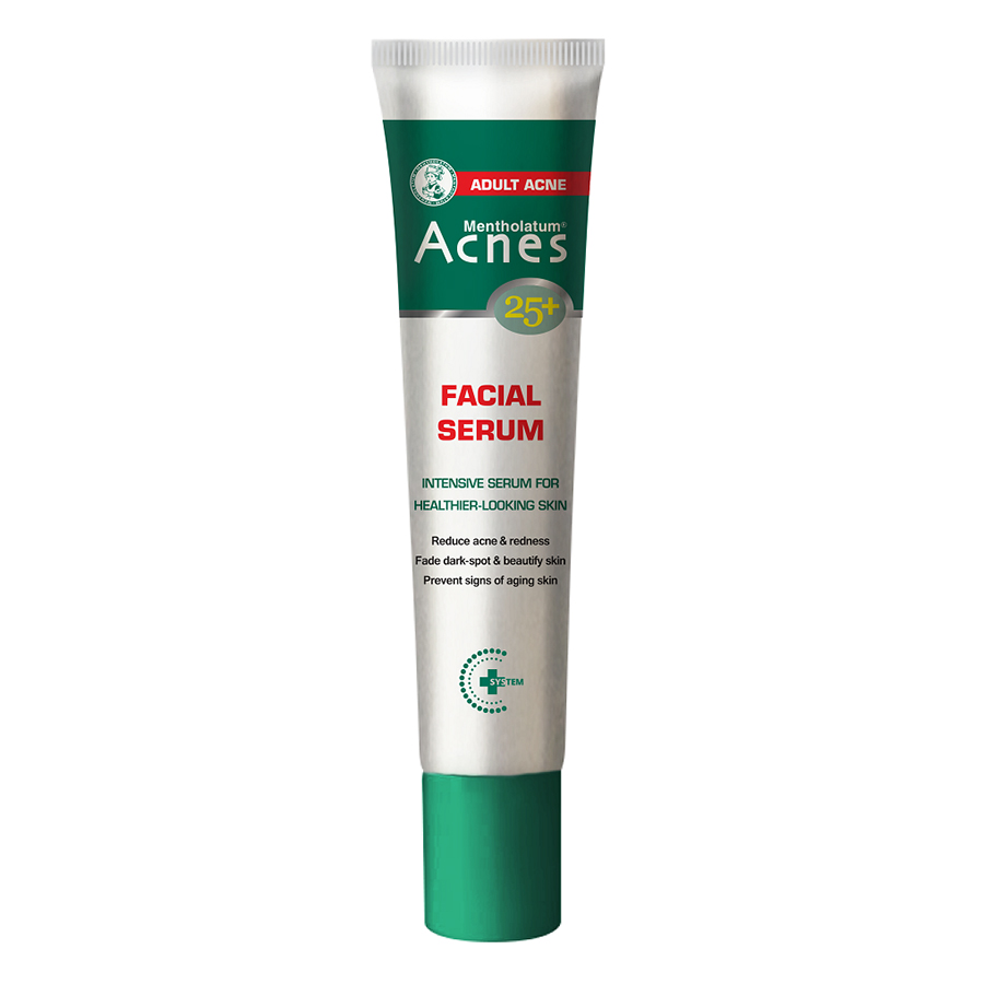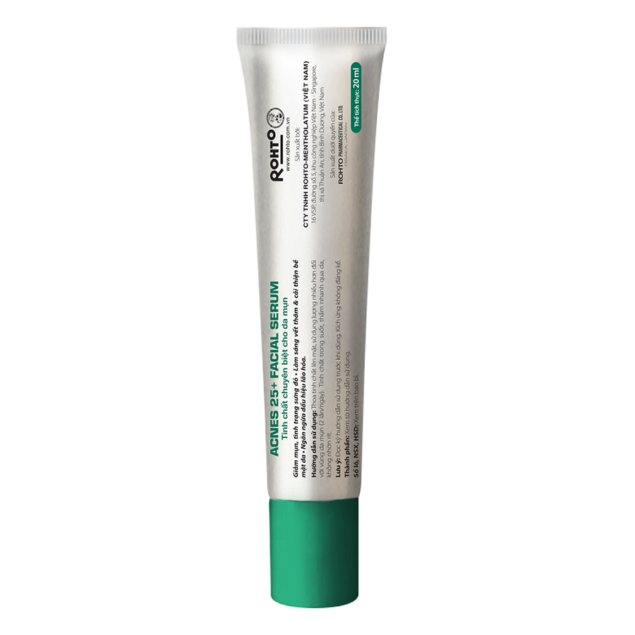 Tinh chất chuyên biệt cho da mụn tuổi trưởng thành Acnes 25+ Facial Serum 20ml Mụn tuổi 25+ thường xuất hiện ở vùng chữ U trên mặt, có khuynh hướng lặp đi lặp lại và khiến da khó phục hồi. Serum chấm mụn Acnes 25+ với công thức chuyên biệt giúp sạch mụn, giảm sưng đỏ, giữ ẩm, làm sáng và săn chắc bề mặt da, ngăn ngừa các dấu hiệu lão hóa da. Serum chấm mụn trong suốt, không nhờn rít, thẩm thấu nhanh với công thức vượt trội C+ SYSTEM kết hợp với Salicylic Acid.