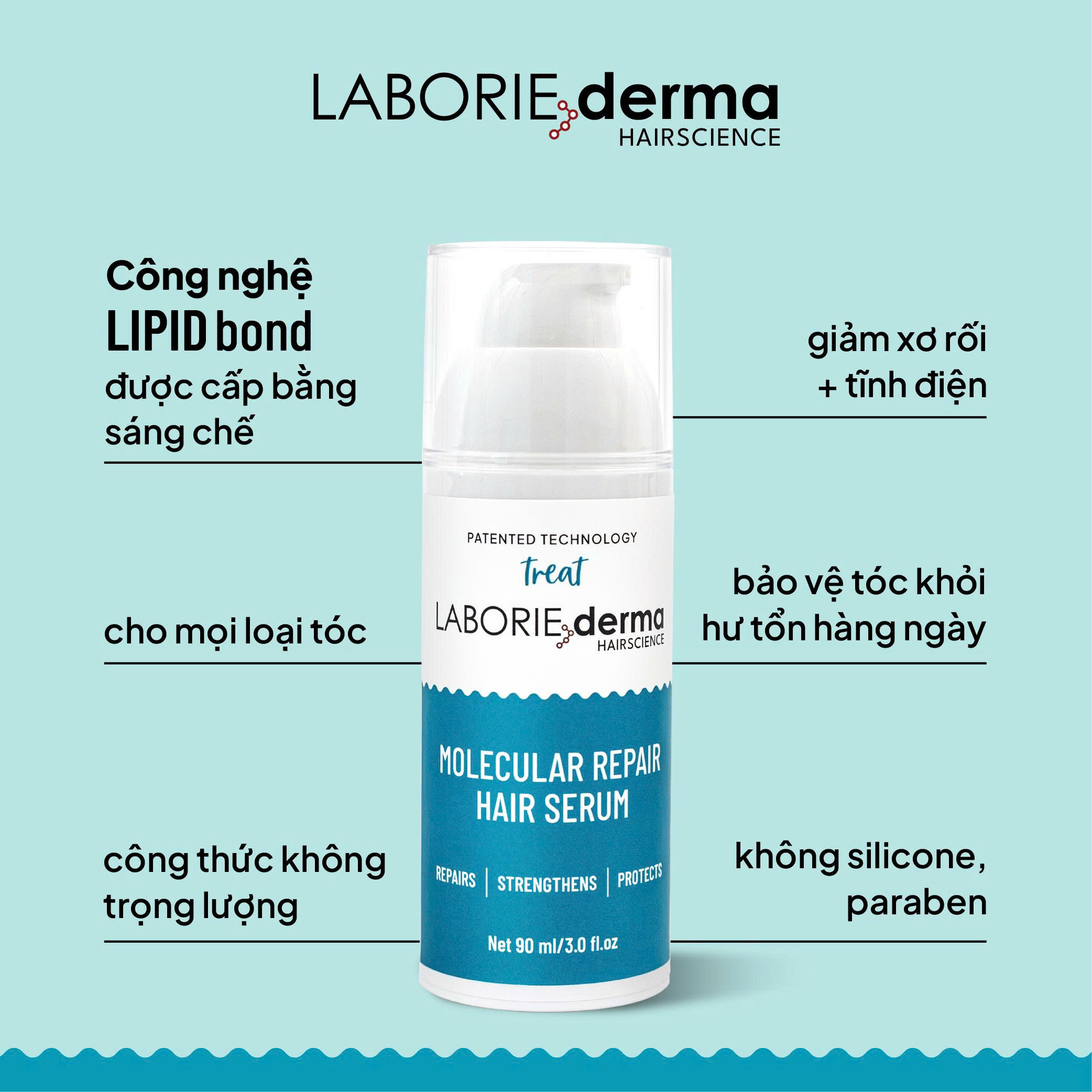 Khởi nguồn từ nền tảng kho a họ c và công nghệ tiên tiến, LABORIE derma đã trải qua 15 năm nghiên cứu và th ử n g hi ệm để phát triển Công n g hệ Lipid Bond đ ộc q u y ề n, được cấp bằng sáng chế. Công nghệ này đã tạo dấu ấn trong lịch sử ngành chăm sóc tóc, phục hồi hư tổn ở cấp độ ph â n tử, mang lại mái tóc khỏe mạnh, bóng mượt và bền vững hơn.