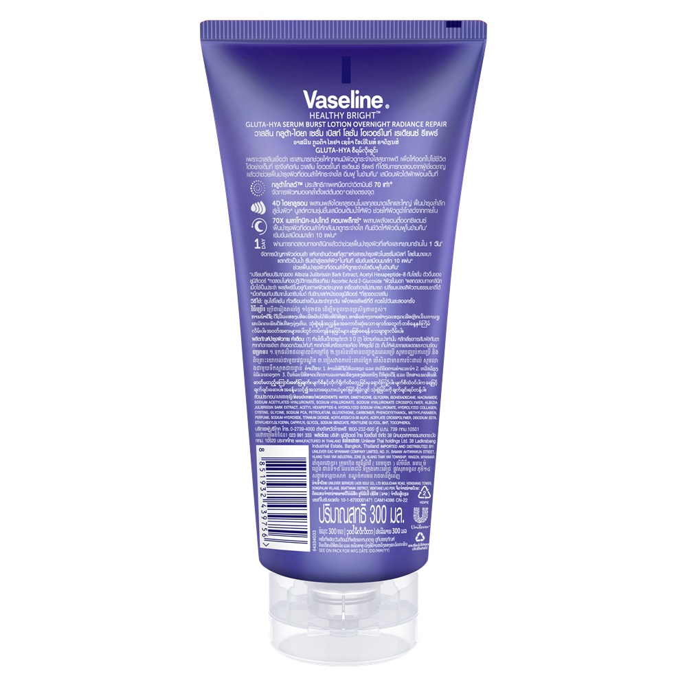 Mua tại TiktokSerum Dưỡng Thể Vaseline Healthy Bright Gluta-Hya Serum Burst Lotion Overnight Radiance Repair 300ml Thành Phần Chính Và Công Dụng: