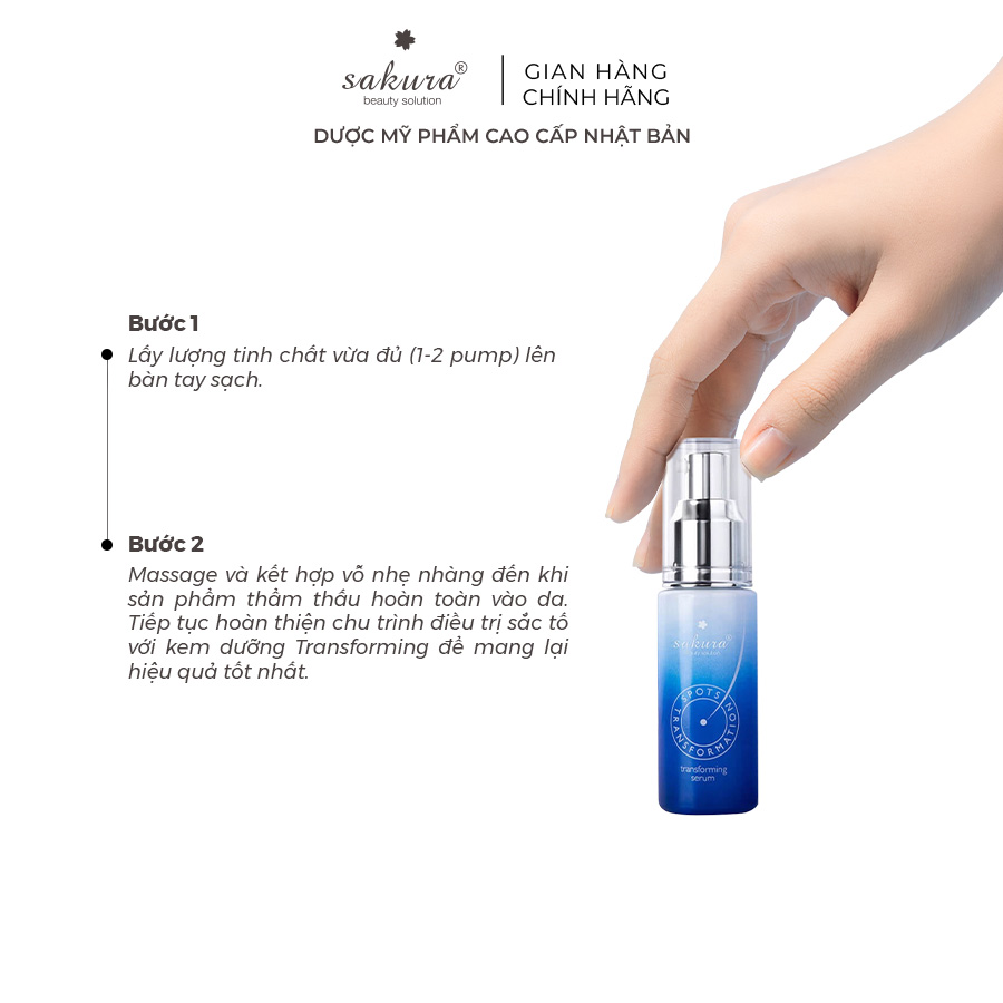 SERUM GIẢM NÁM SAKURA TRANSFORMING SERUM 30ML Serum giảm nám Sakura Transforming Serum là Serum mới nhất đến từ thương hiệu Dược mỹ phẩm cao cấp Sakura Beauty Vietnam. Đây là sản phẩm