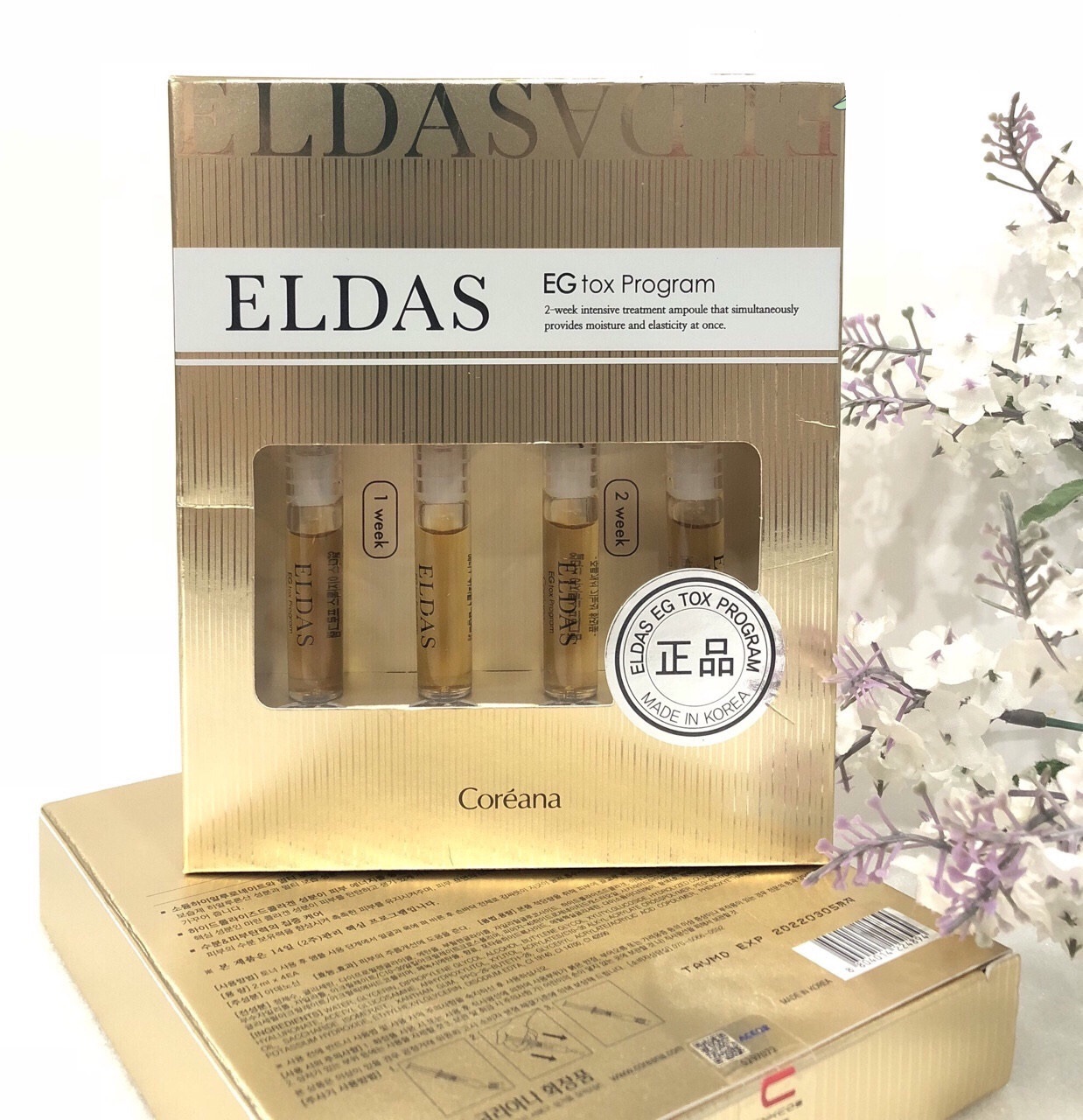 - Tế bào gốc Eldas EG Tox Program Coreana 4 ống nuôi dưỡng da căng mịn, trẻ trung, làm chậm quá trình lão hóa da.