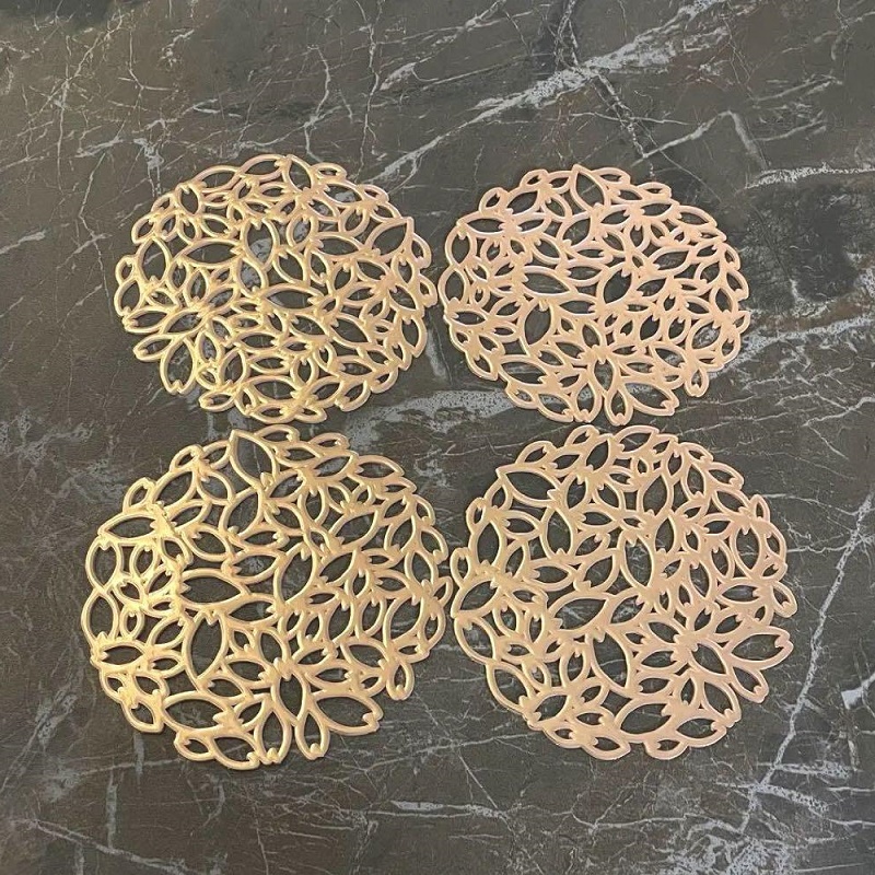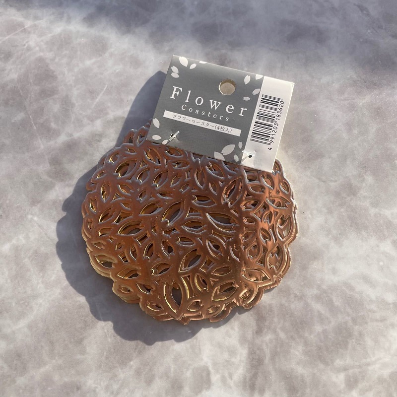 Set 04 tấm đế lót ly cốc hình tròn Echo Flower Ø10cm ■ Xuất xứ: Nhật Bản | MADE IN JAPAN ■ NSX: Echo Kinzoku Co.,Ltd (Japan) ■ Kích thước: Ø100mm ■ Màu sắc: Màu xám Gray | Màu vàng