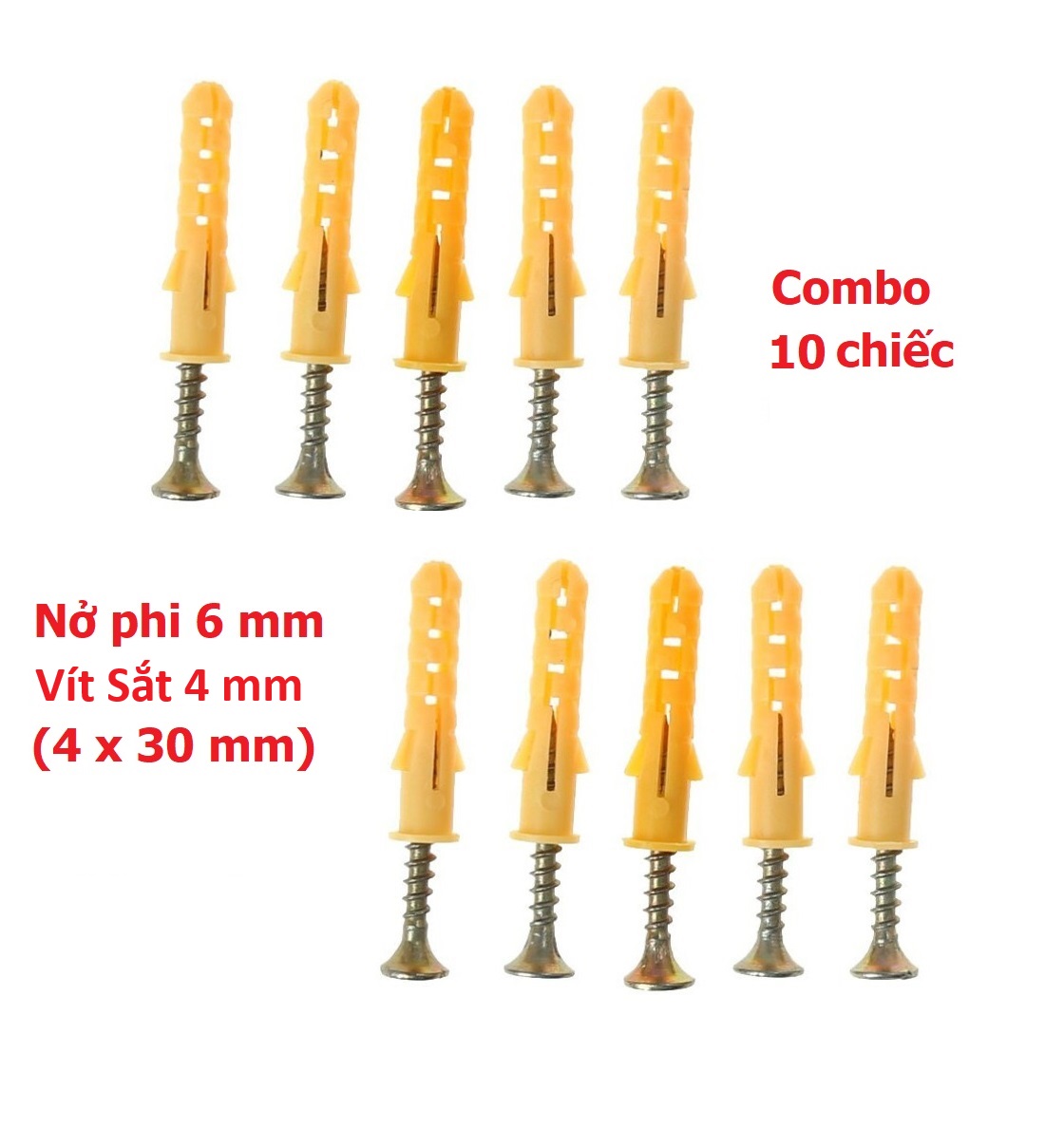 - Tên hàng hóa: 10 Nở Nhựa + Vít Sắt màu Vàng 6 mm