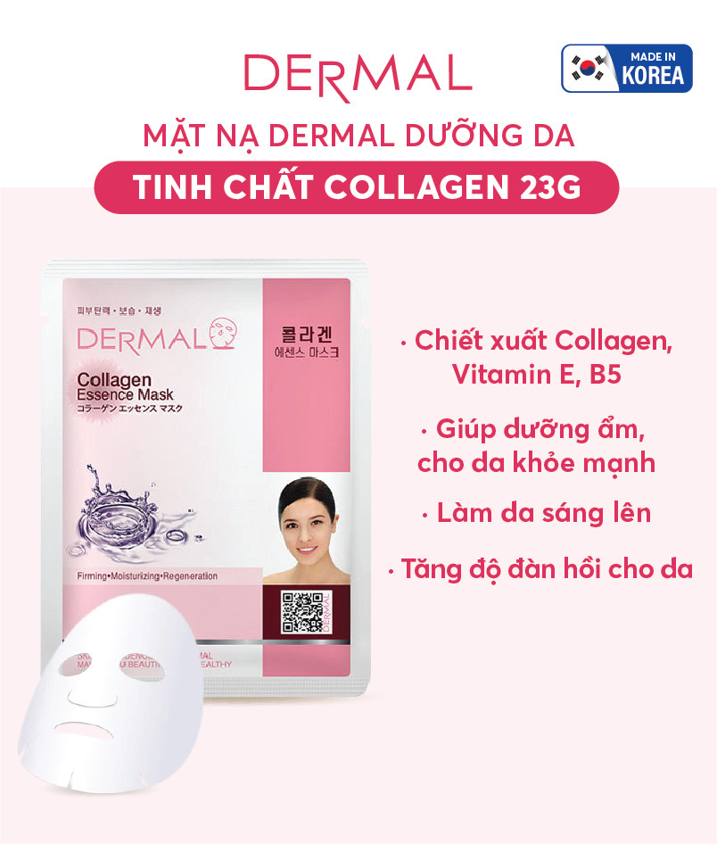 Mặt nạ dưỡng chất collagen giúp ngăn ngừa hiệu quả quá trình lão hóa da, làm căng và săn chắc da, đặc biệt giúp tái tạo da cho làn da tươi trẻ với sắc hồng tự nhiên. Sản phẩm không kích ứng và thích hợp với mọi loại da. Cung cấp các dưỡng chất làm ức chế sự sản sinh sắc tố melanin, giúp cân bằng da, tạo cho da cảm giác sạch sẽ, sảng khoái tức thời.