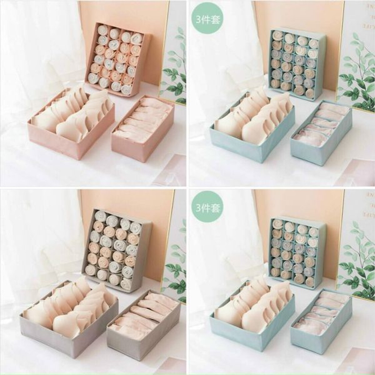 Set 3 Hộp Đựng Đồ Lót Túi Đựng Đồ Lót, Tất Vớ, Đựng Đồ Đa năng Gấp Gọn Đa Năng - Hàng Loại 1 - Chính Hãng MINIIN Các hộp vải được chia ngăn khoa học, giúp sắp xếp đồ nhỏ của nhà mình thiệt là ngay ngắn, đúng form, không xô lệch. Khi không sử dụng, hộp có thể được xếp lại dẹt như 1 tờ giấy, nên rất tiện cho việc lưu trữ. Chất liệu vải không dệt thân thiện môi trường và dễ vệ sinh nếu bị bẩn. Một bộ sản phẩm gồm: 1 hộp đựng bra chia 7 ngăn, 1 hộp đựng quần lót chia 6 ngăn, 1 hộp đựng vớ chia 20 ngăn. Ngoài ra bạn cũng thể dùng đựng các phụ kiện thời trang nhỏ khác, tùy theo nhu cầu mỗi người. Hiện có các màu: xám, xanh và hồng Kích thước: Hộp đựng bra 7 ngăn: 33289cm Hộp đựng vớ 20 ngăn: 33289cm Hộp đựng quần lót 6 ngăn: 33169cm