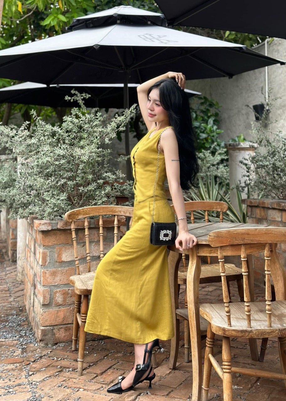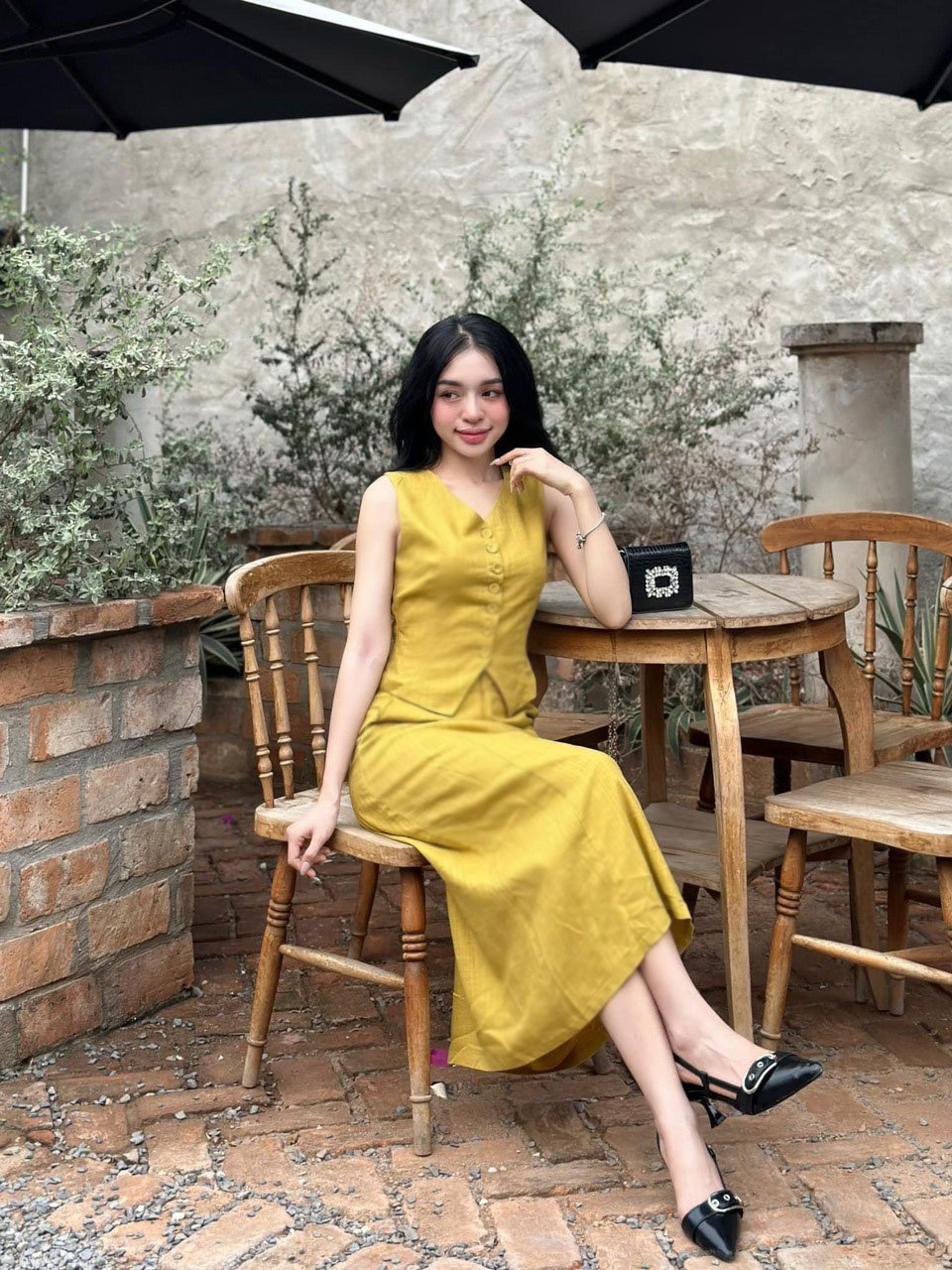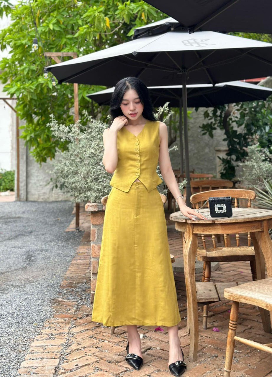 ღ THÔNG TIN SẢN PHẨM: Tên sản phẩm: Set áo quần vàng trễ vai Màu sắc: vàng Chất liệu: chéo dày Chi tiết sản phẩm: không lót, không túi. Thông