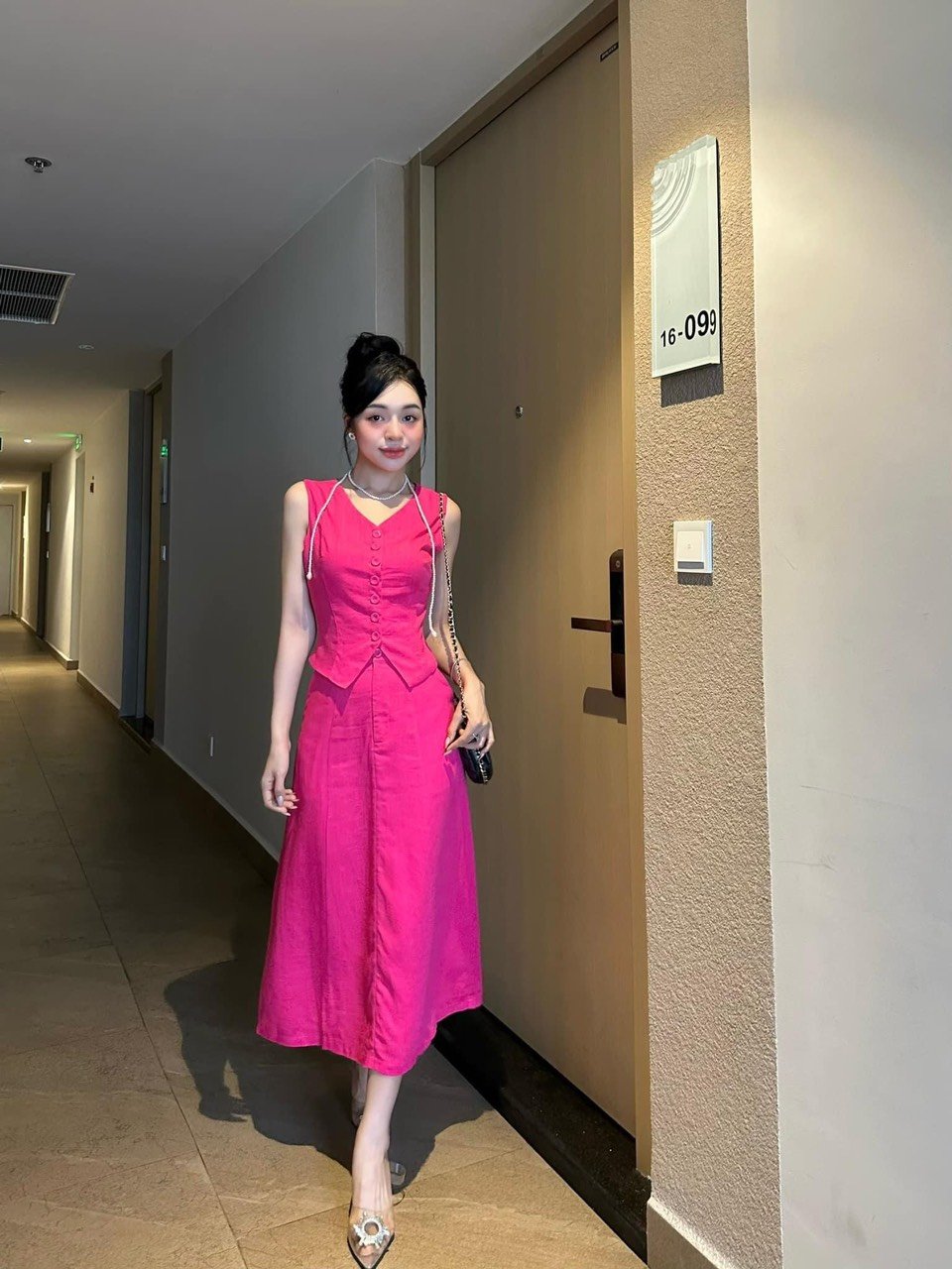 ღ THÔNG TIN SẢN PHẨM: Tên sản phẩm: Set áo váy hồng sát nách xếp ly Thông số size: S, M, L, XL Chất liệu: gân ý Chi tiết sản phẩm: