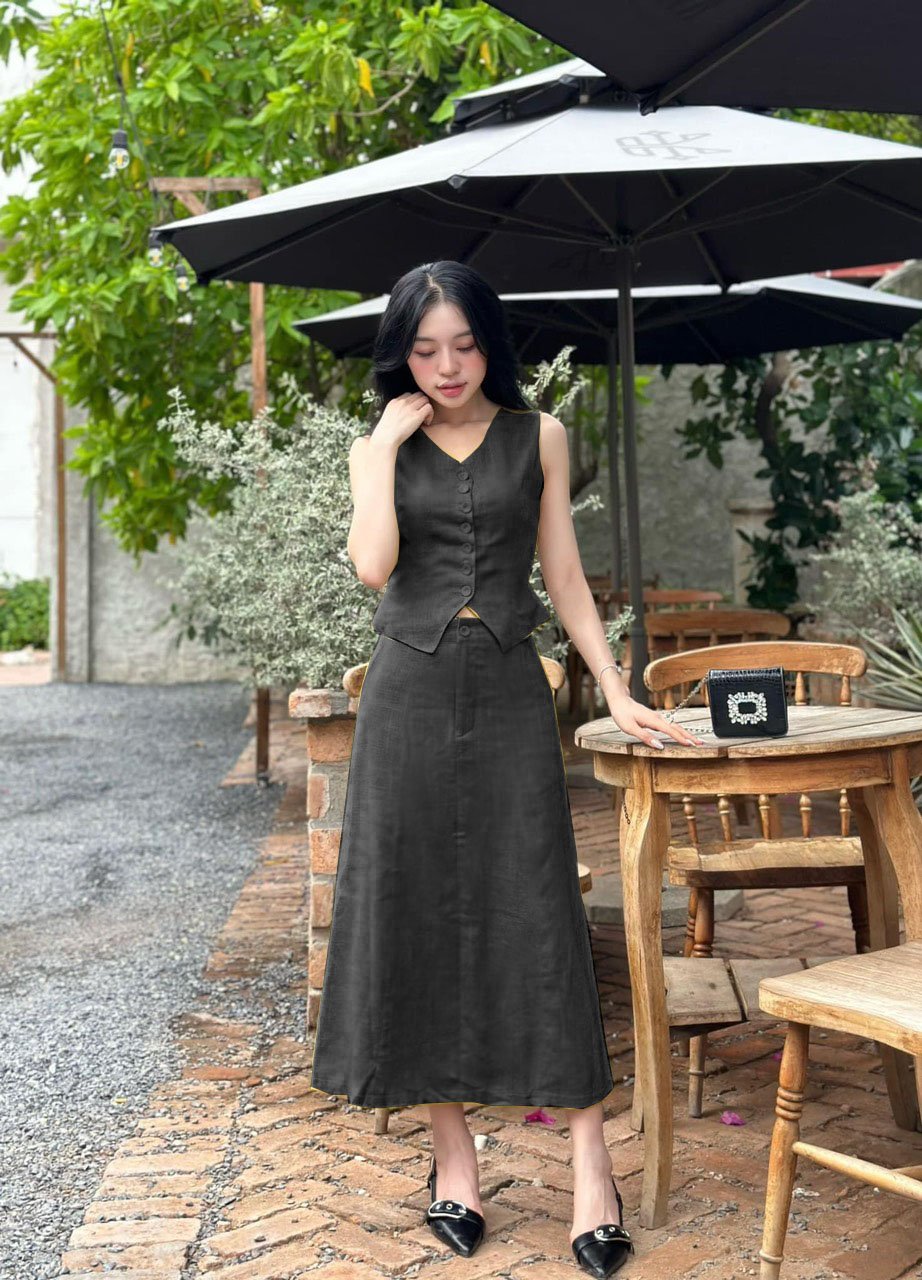 ✨Set áo ghi lê 6 nút kèm chân váy dài