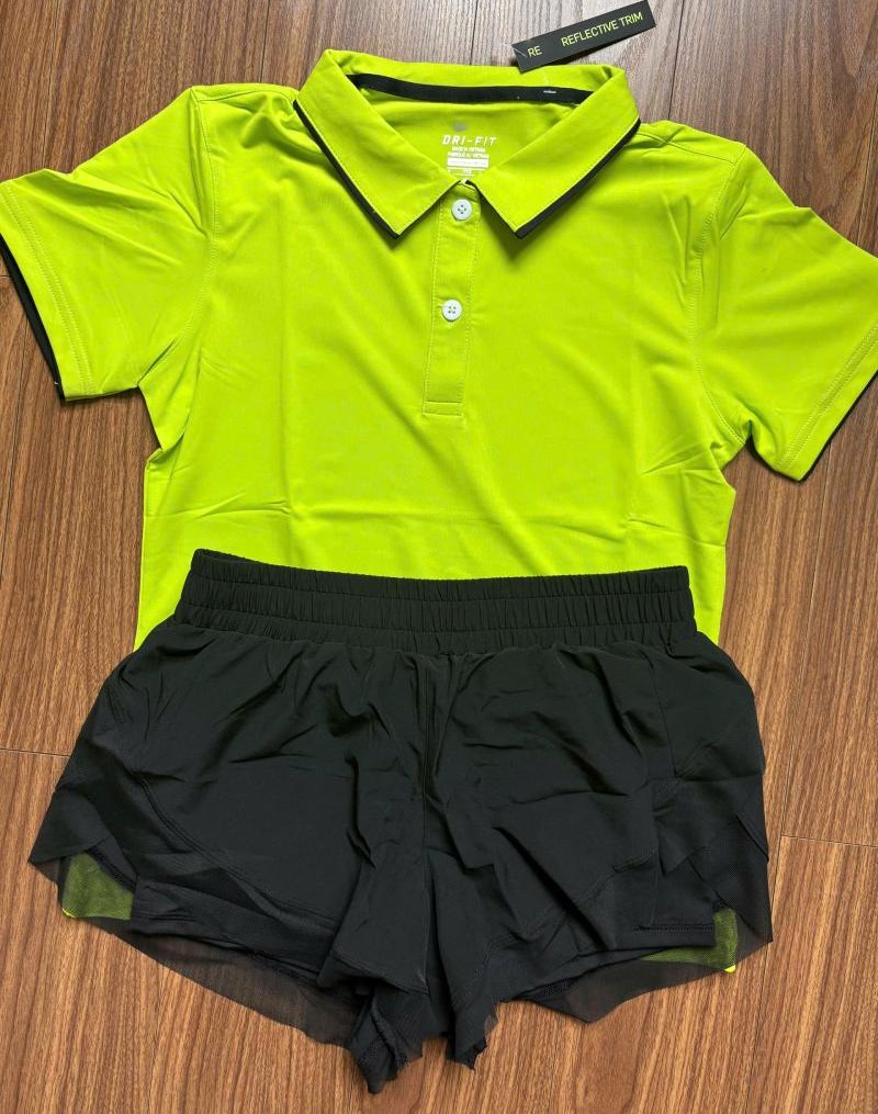 ✨Set đồ nữ gồm áo thun cổ trụ và quần đùi 2 lớp phong cách thể thao sang trọng