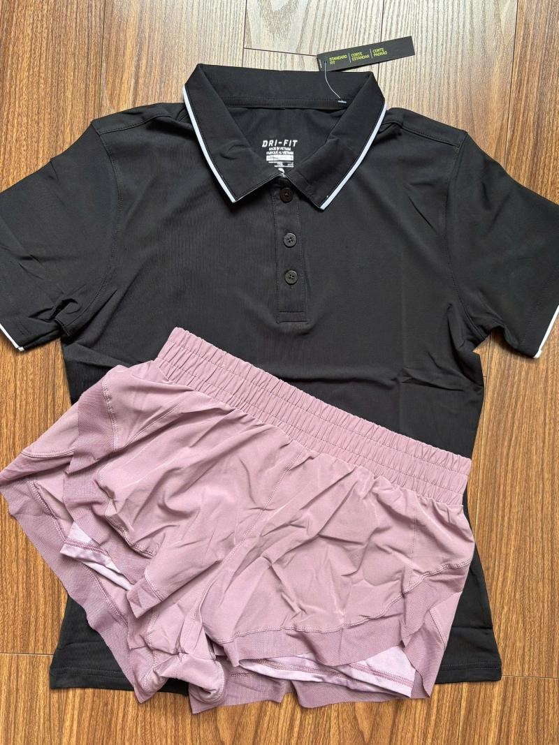 - Quần đùi hàng quảng châu cao cấp Quần có 2 lớp: lớp ngoài là vải polyester, bên trong là lớp thun lạnh co giãn 4 chiều có túi bên hông đựng đồ lặt vặt Quần lưng cao giúp chị em hack vòng 2 cực đỉnh, lên dáng siêu đẹp Quần có 3 màu: Đen, Xanh, Tím 2.Áo có cổ nữ, golf, tennis,chất thun mịn, mát co giãn, chất dày dặn, hình thật Áo thể thao nữ golf, tennis, cầu lông nữ xinh phom chất chuẩn đẹp Thun co giãn 4 chiều Size: M, L, XL, 2XL Màu: Đen, Xanh dạ quang, Đỏ, Cam