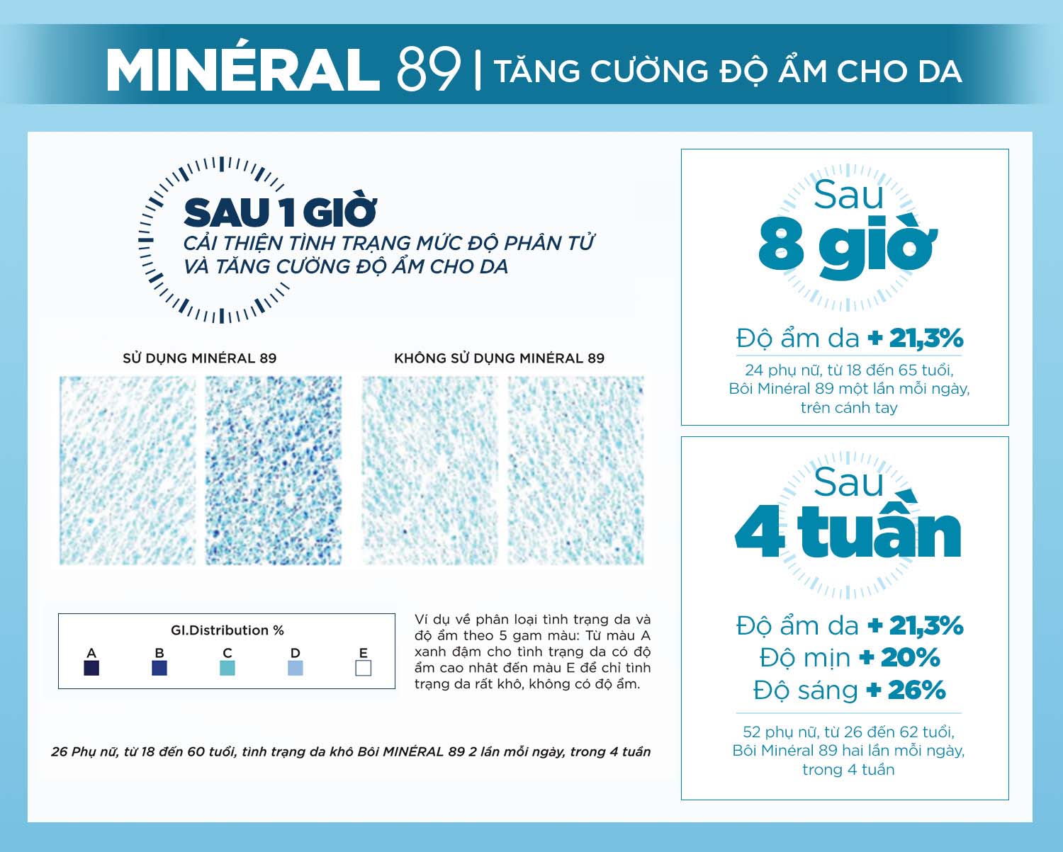 Dưỡng chất khoáng cô đặc Vichy Mineral 89 với thành phần 89% là nước khoáng cô đặc chứa 15 loại khoáng chất quý hiếm cực kỳ tốt cho da, cùng với Hyaluronic Acid tạo nên một lớp hàng rào bảo vệ da đồng thời phục hồi da căng mịn khỏe khoắn.