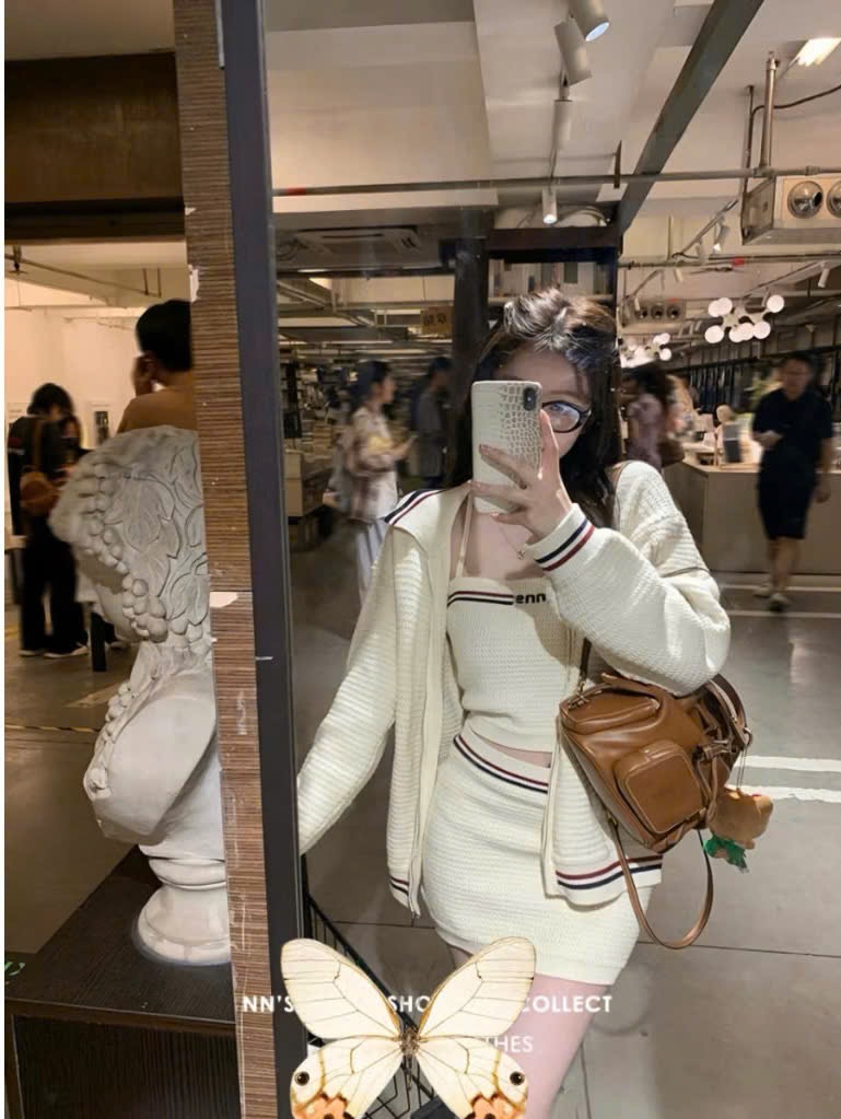 ✨Set Len 3 Món Áo Khoác Cardigan Khóa Kèm Áo 2 Dây Crotop Mix Chân Váy Ôm