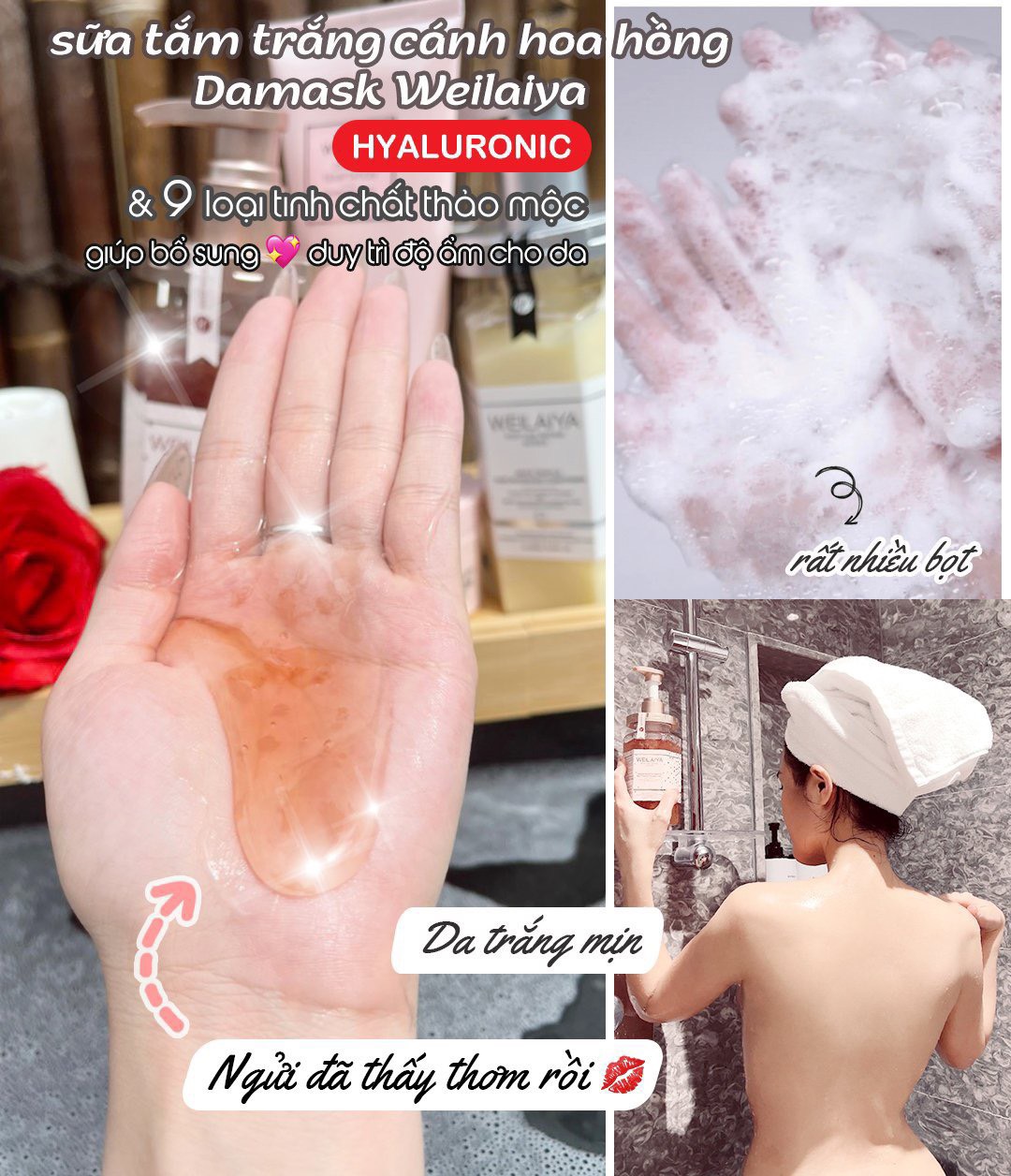 VẠCH TRẦN SỮA TẮM TRẮNG DA CÁNH HOA HỒNG DAMASK WEILAIYA CÓ TỐT KHÔNG, MUA Ở ĐÂU 0909.64.7968