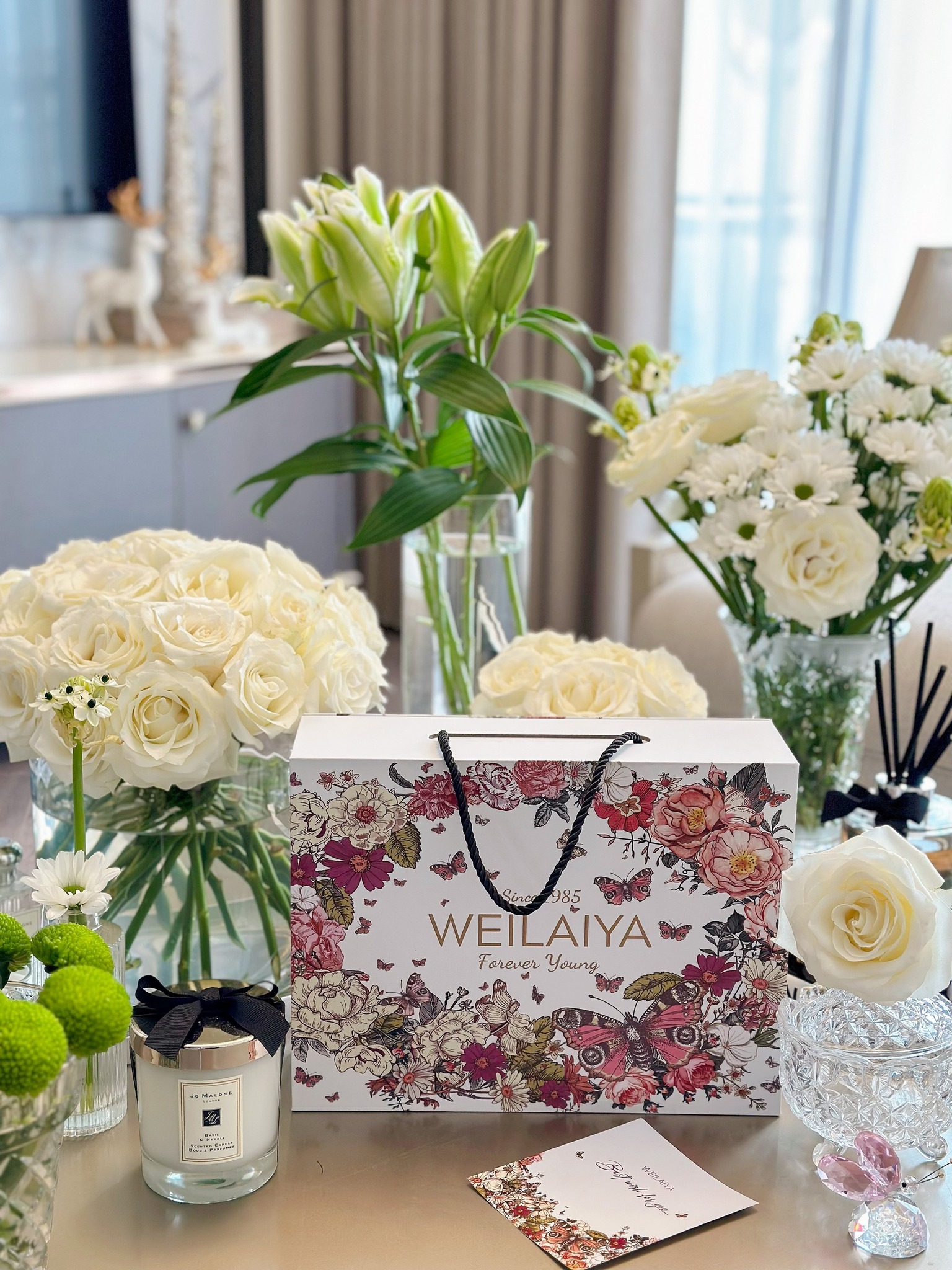 ✨Set quà tặng cao cấp WEILAIYA: Combo Sữa tắm Hoa Hồng và Kem body dưỡng da ban ngày có chống nắng